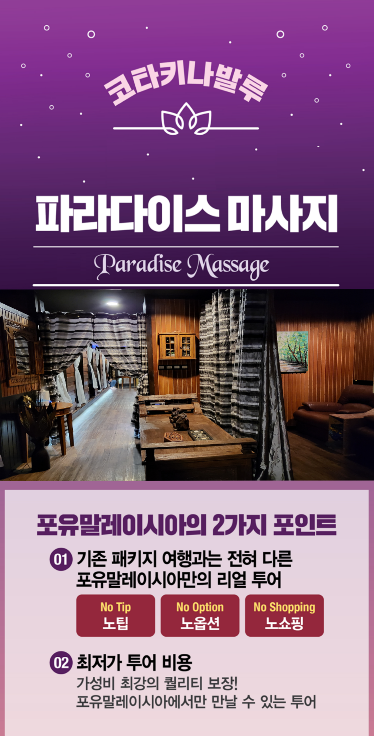 NO 팁 NO 쇼핑 NO 옵션 자유롭게 즐기세요.