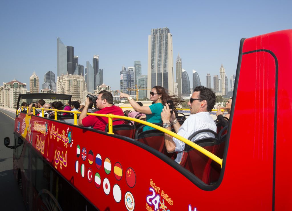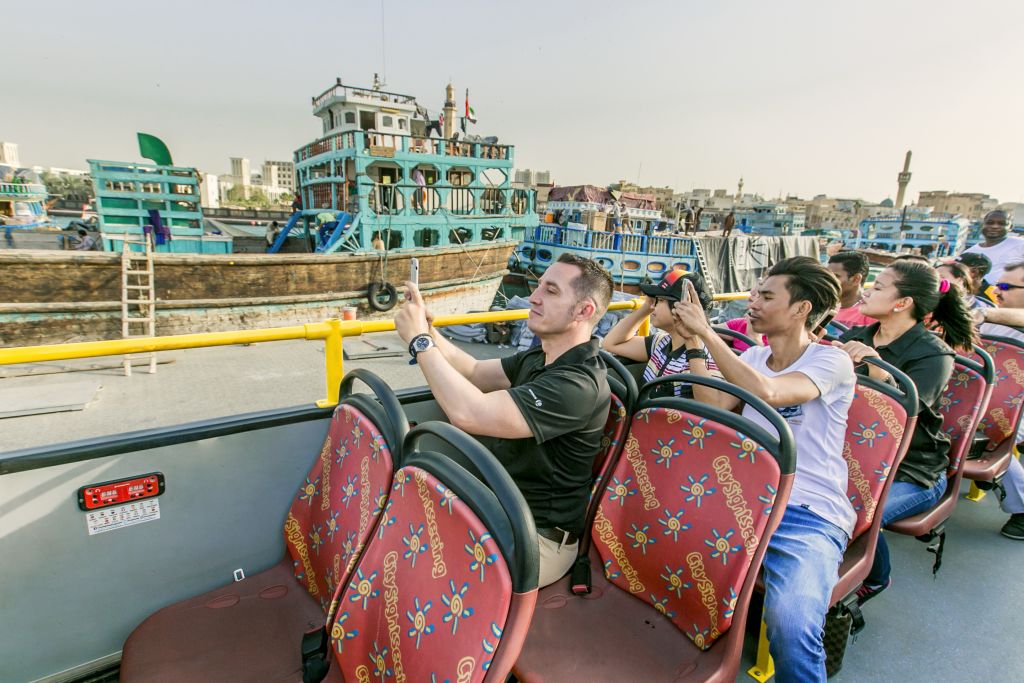 오픈탑 2층 버스에서 편리하게 두바이 여행을 즐겨보세요.