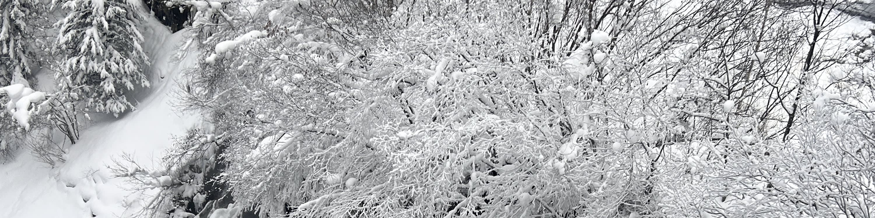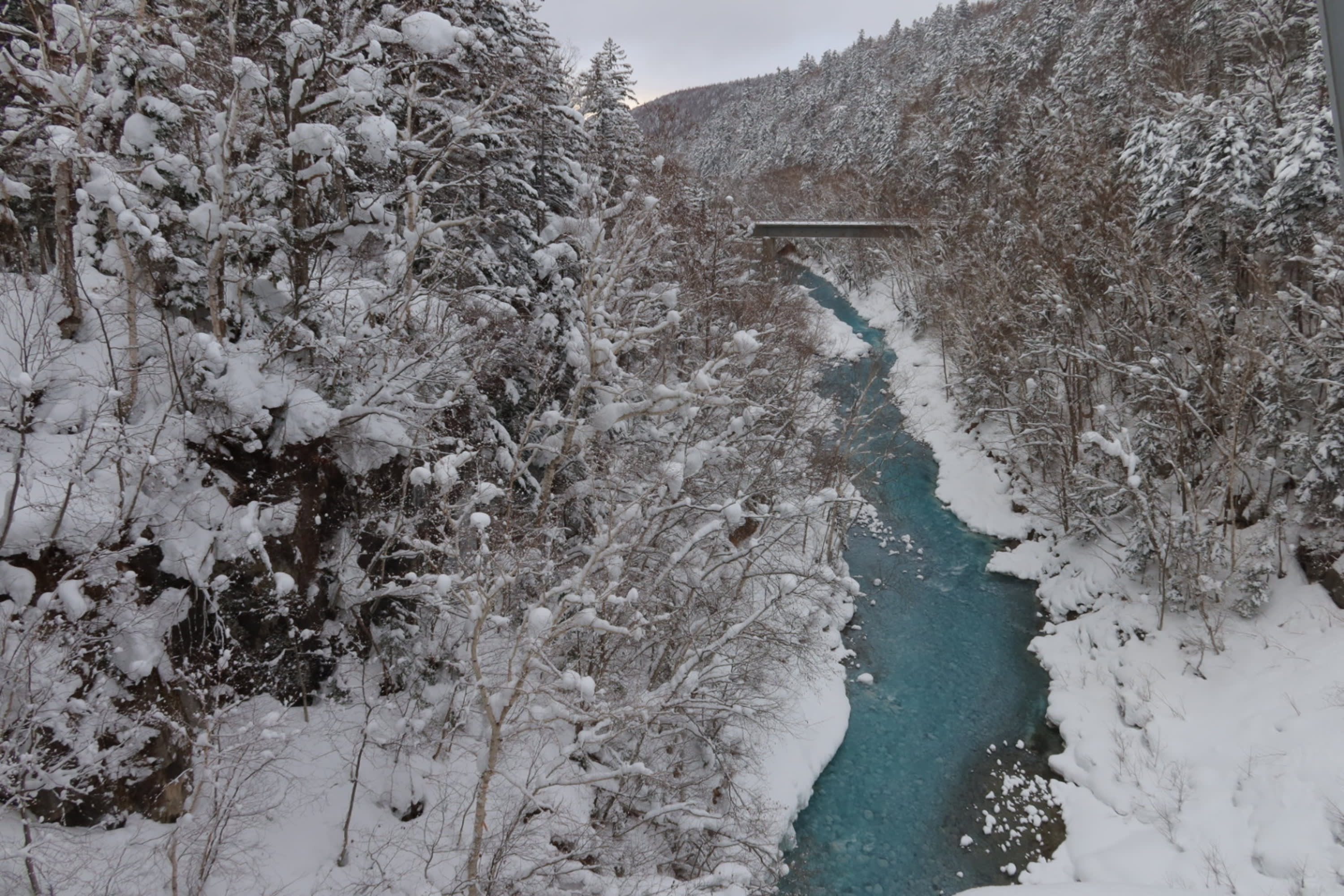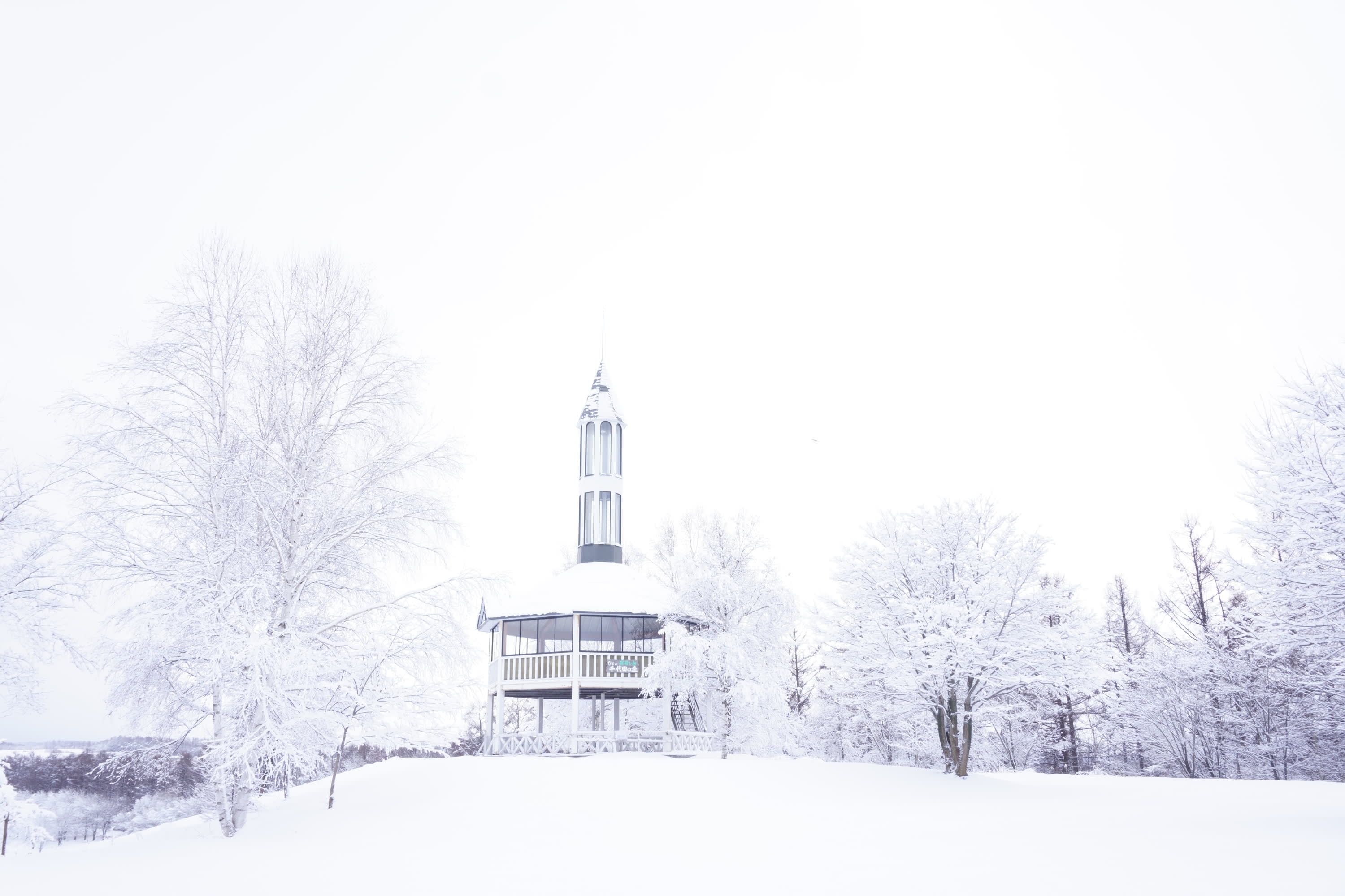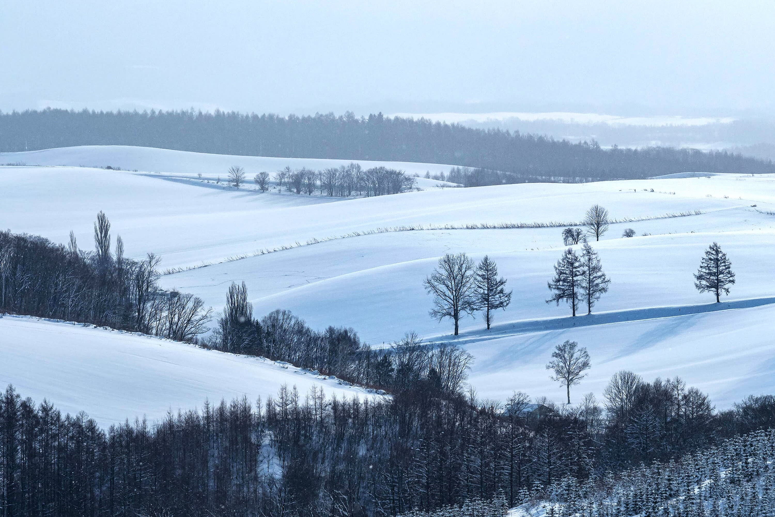 * 겨울의 비에이는 두꺼운 눈으로 덮여 있으며, 산길과 숲 속 눈길이 얽혀 고요한 하얀 세계로 들어가는 듯합니다.