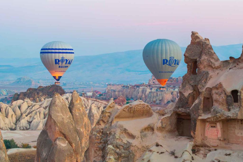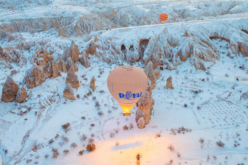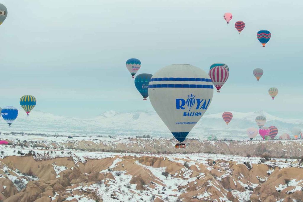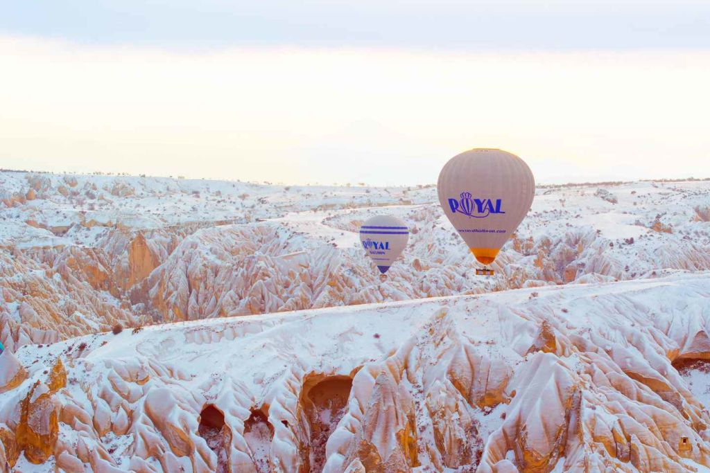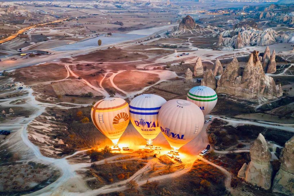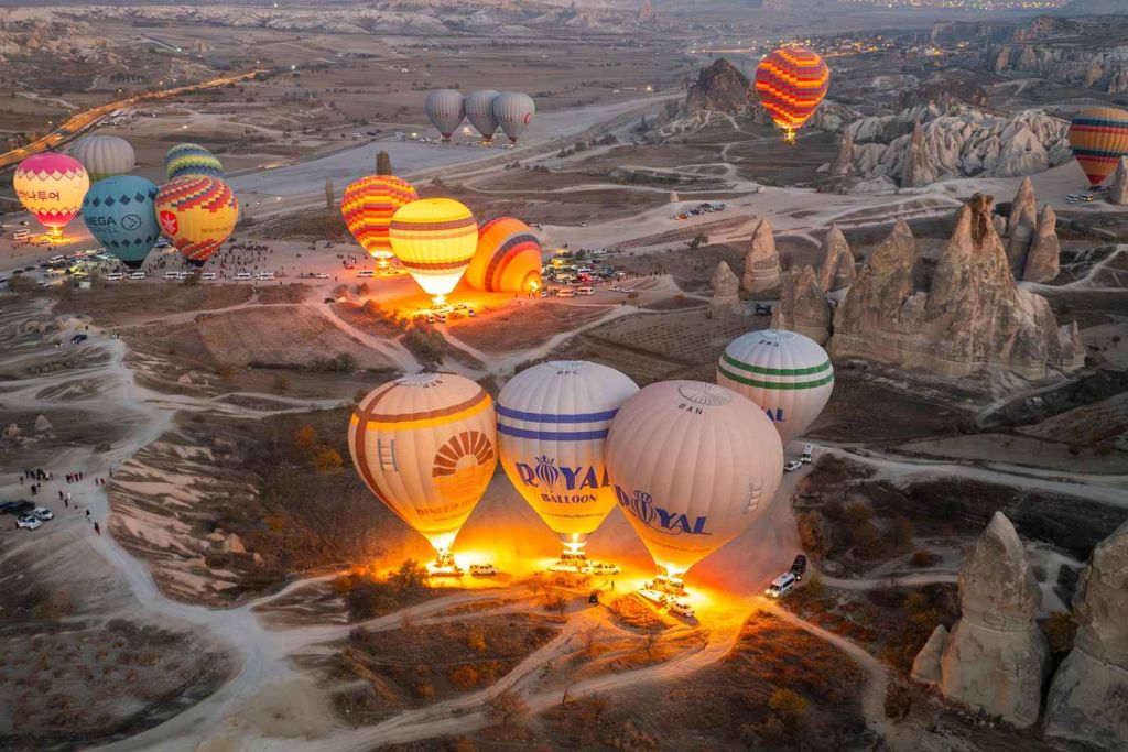카파도키아의 웅장한 풍경을 상공에서 감상하세요.