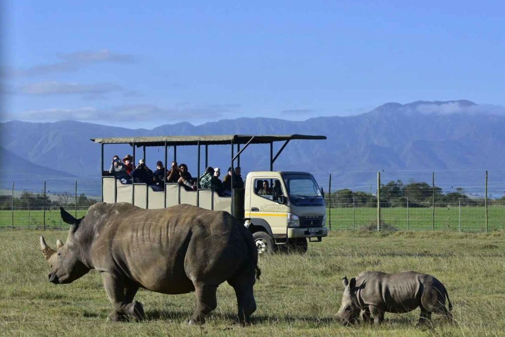 첫 번째 방문지인 게임 보호구역은 차로 5시간(날씨, 정류장 및 교통 상황에 따라 달라질 수 있음)이 걸리지만 도중에 사진 촬영 및 휴게소가 몇 군데 있어 경치 좋은 곳입니다. 3500ha 규모의 보틀레리콥 개인 게임 보호구역은 말라리아가 없는 지역에 위치해 있으며 빅 5 중 4종, 기린, 얼룩말, 누우, 26종 이상의 동물, 200종 이상의 조류 등 풍부한 야생동물이 서식하고 있습니다. 오픈탑 4x4 차량의 뒷좌석에서 아프리카의 야생 동물을 관찰하고 특히 사자, 코끼리, 버팔로, 코뿔소를 목격할 수 있는지 두 눈을 크게 뜨고 지켜보세요. 표범은 야행성 사냥꾼으로 울타리에 갇혀 있지 않기 때문에 게임 드라이브 중에 표범을 볼 가능성은 거의 없습니다. 이 독특한 해안 레노스터벨트 지역의 작은 야생동물, 곤충, 식물을 발견하면 레인저가 사파리 차량을 멈추고 자세히 설명해 줄 것입니다.