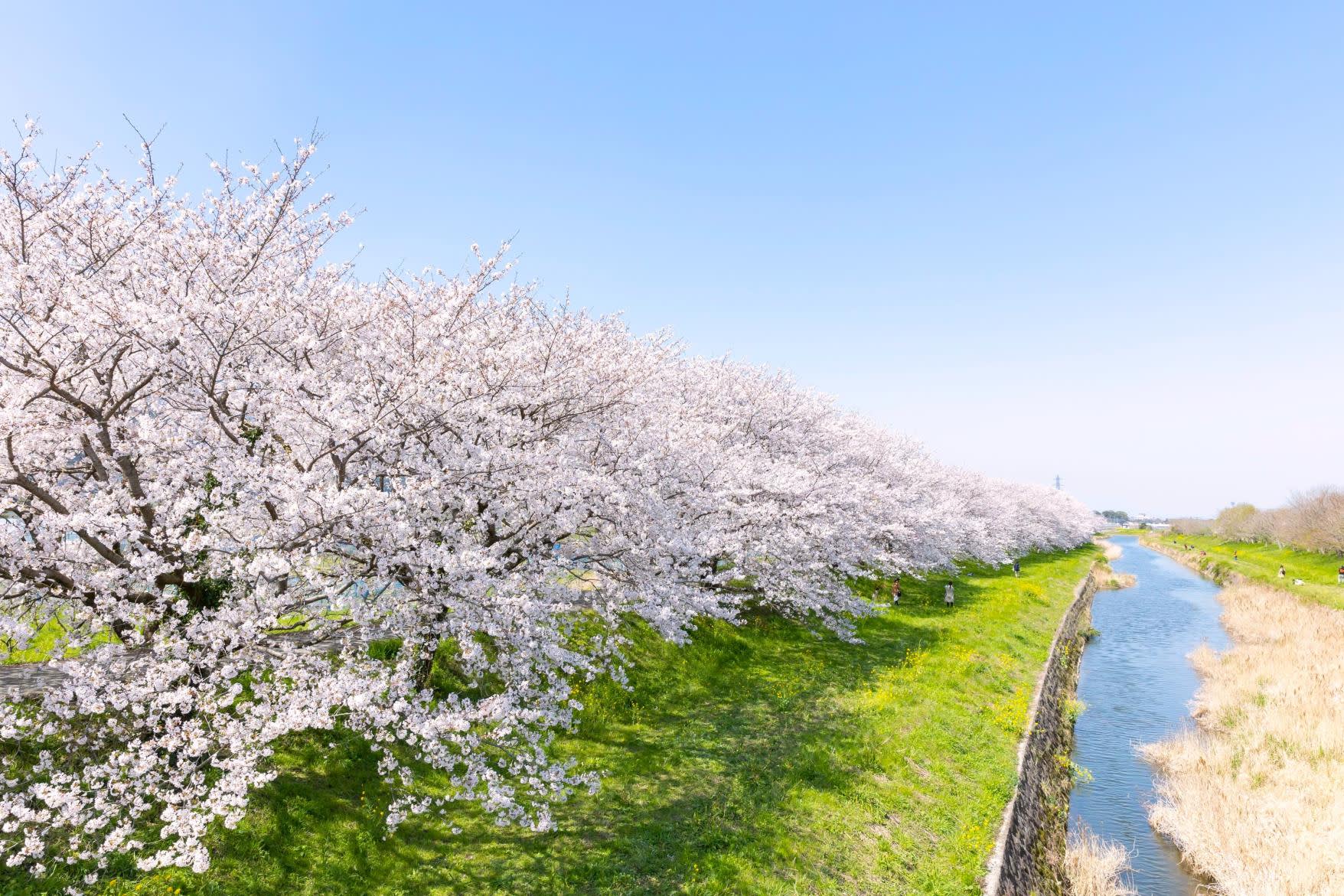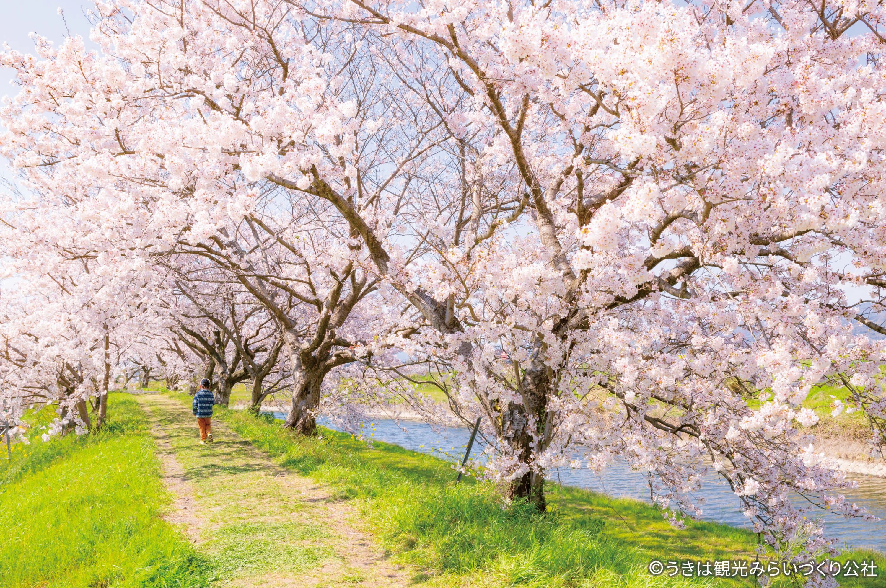 벚꽃으로 둘러싸인 봄날의 풍경, 느긋하게 힐링하며 산책하는 코스 신사, 성터, 강변 벚꽃이 어우러져 하루에 다양한 봄의 모습을 볼 수 있습니다. 빡빡한 일정 없이, 힘들게 돌아다닐 필요 없이, 후쿠오카의 벚꽃을 편안하게 즐겨보세요.