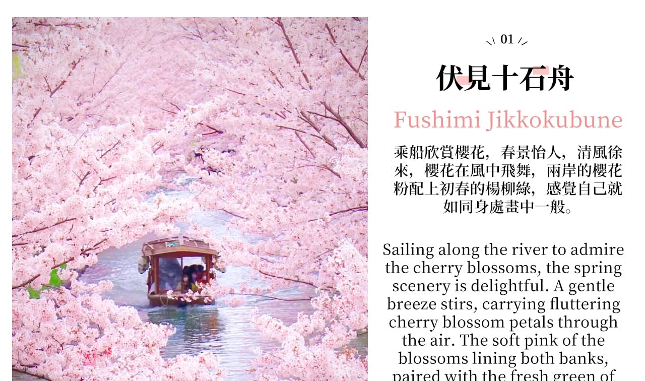 * 낭만적인 벚꽃 감상 체험: 교토의 벚꽃 강길을 거닐며 역사적인 고선이 강변을 지나는 모습을 감상하고, 평온한 봄 경치를 즐겨보세요.