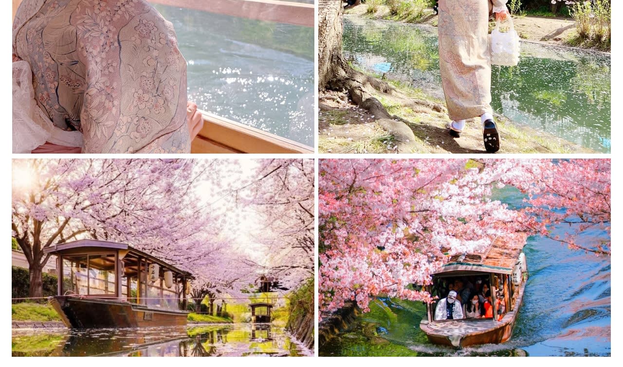 * 후시미 짓코쿠부네를 따라 강변을 거닐며 흩날리는 벚꽃과 푸른 버드나무가 어우러진 그림 같은 풍경을 느껴보세요.