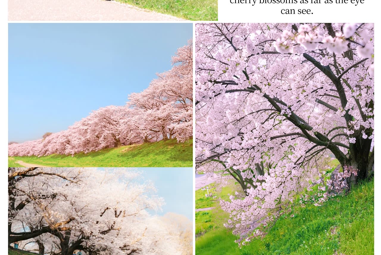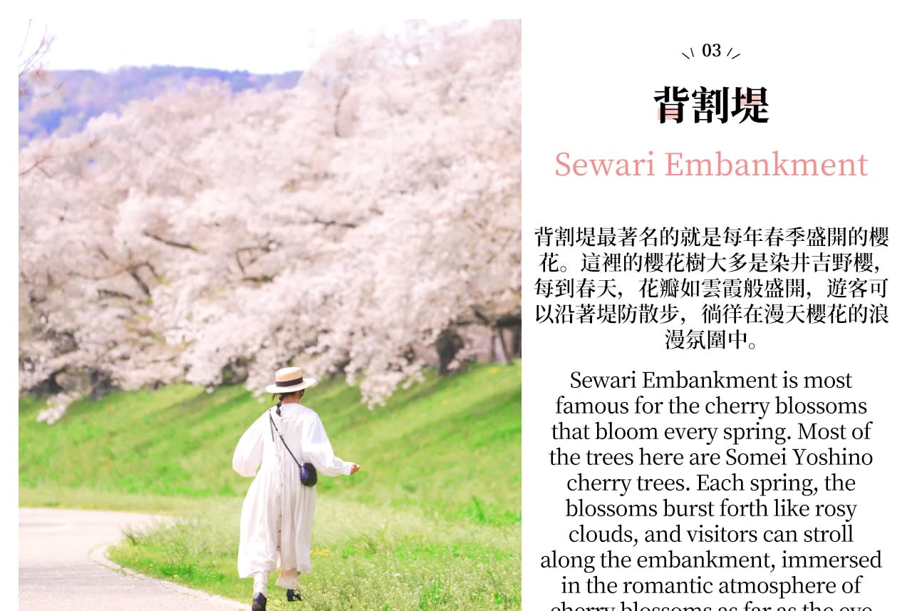 * 세와리 제방을 거닐며 낭만적인 벚꽃 터널에 몸을 담그고 강물에 비치는 모습과 꽃잎이 서로 어우러지는 모습을 감상하세요.