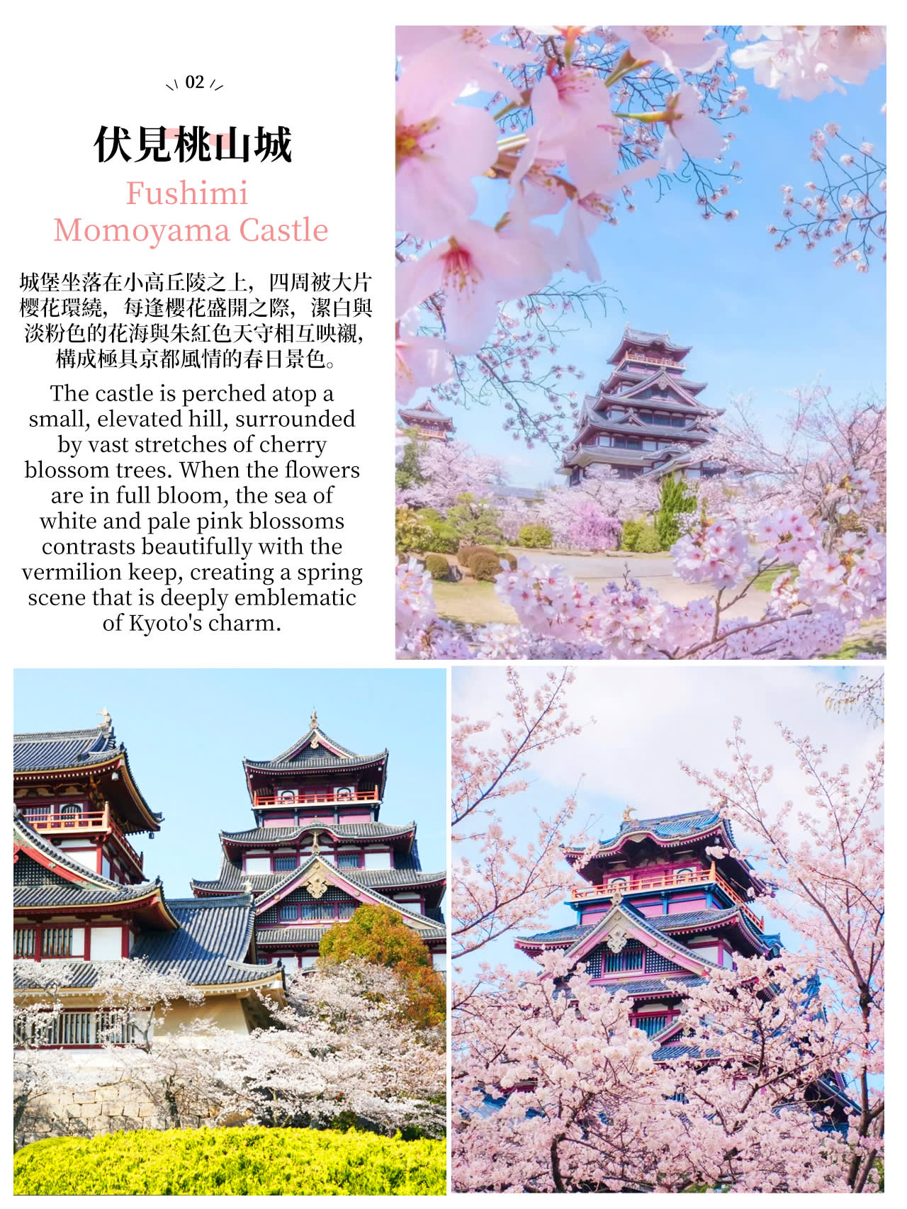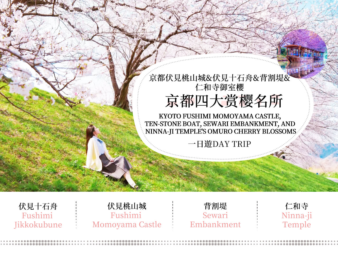 * 교토의 대표적인 벚꽃 명소 한 번에 방문: 후시미 모모야마 성, 세와리제, 닌나지 오무로 벚꽃 등 아름다운 봄 풍경을 사진에 담아보세요.