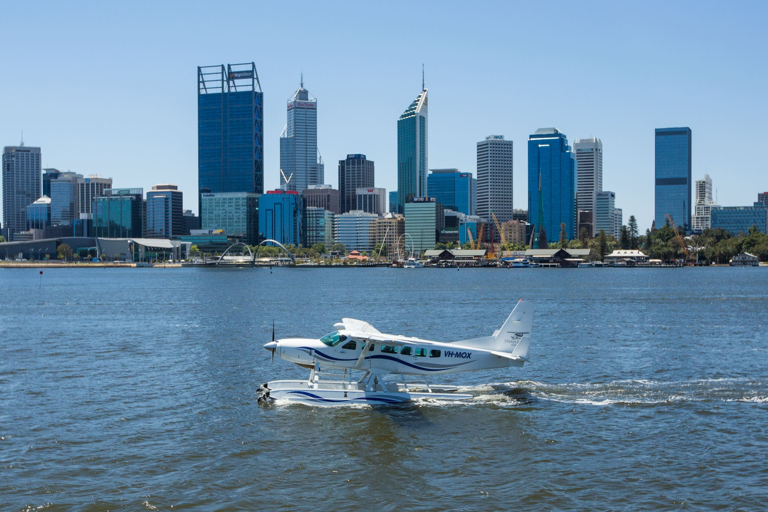 * 퍼스 시티, 스완 강, 인도양 해안선, 아름다운 해변을 над 수상 비행기로 감상하세요.