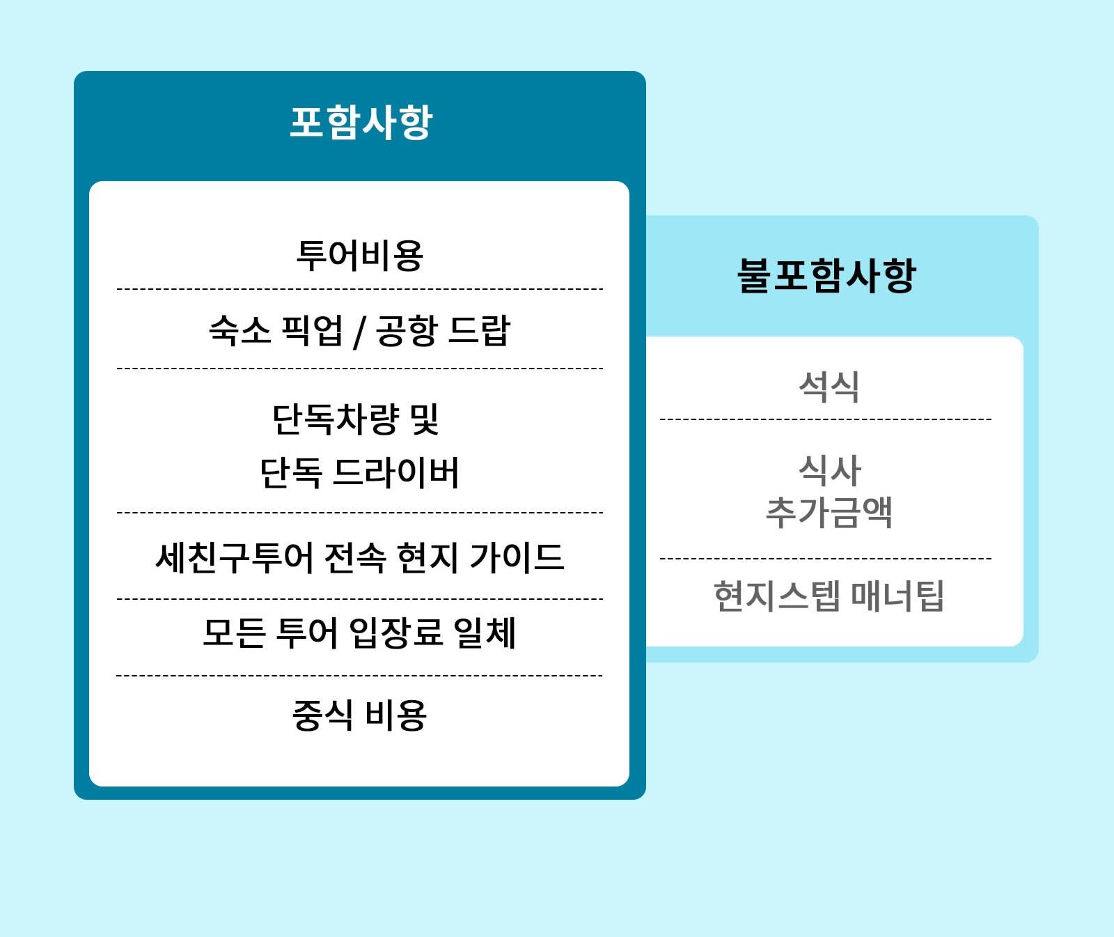 숙소 픽업 및 드랍 / 모든 투어 입장료 일체 [포함]