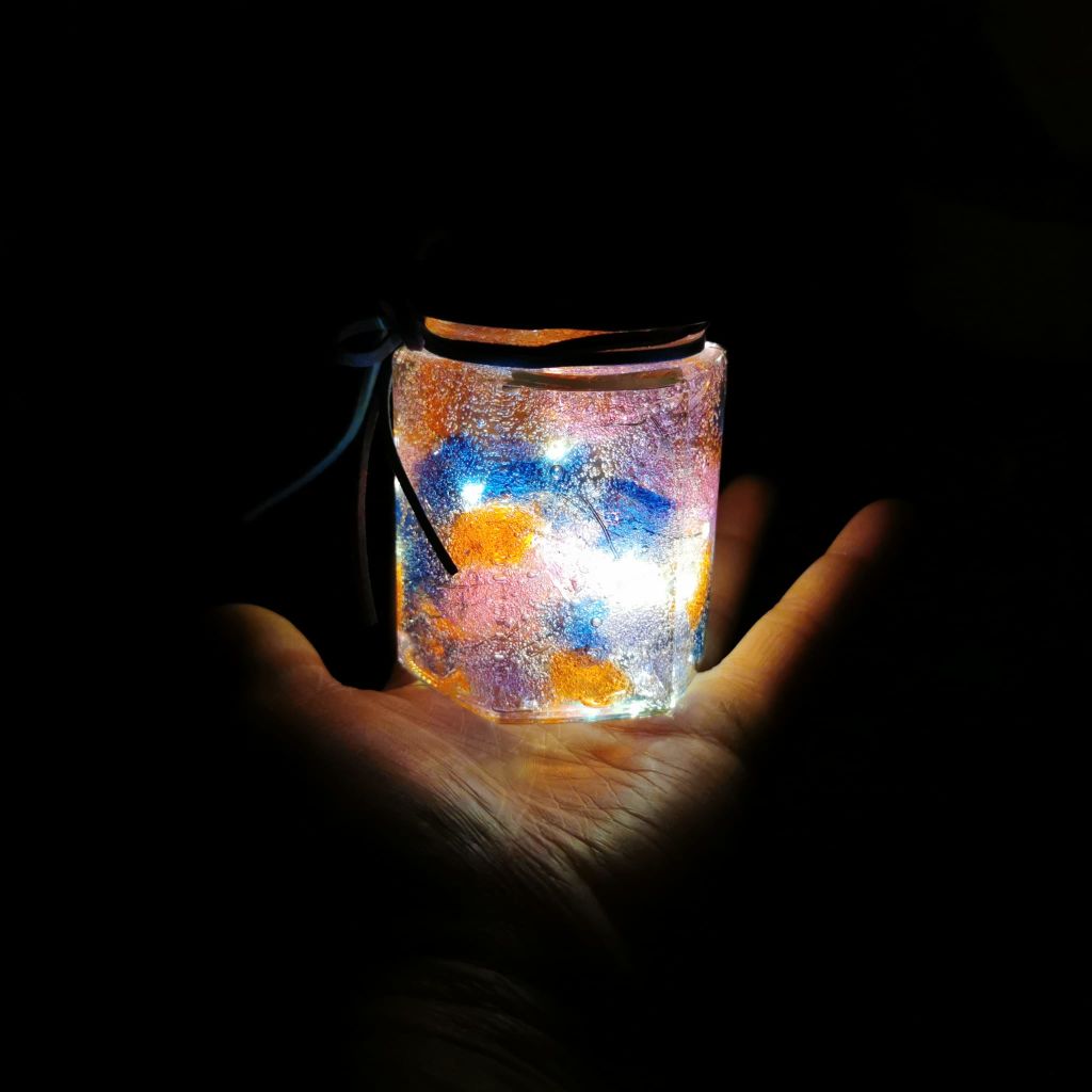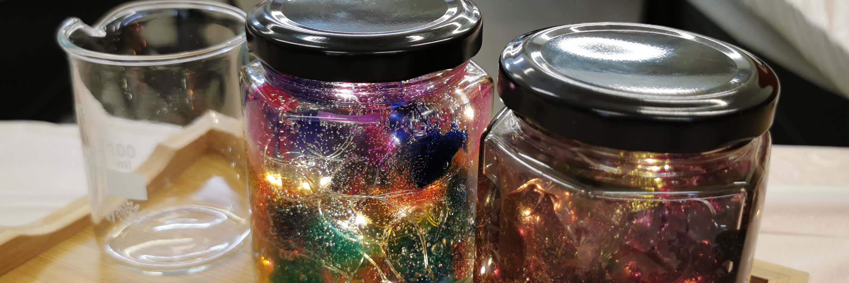 【힐링 컬러 무드등】 워크숍 유리병에 두 번째 생명을 불어넣어 매일 밤을 밝혀보세요. 방에 따뜻하고 로맨틱한 분위기를 더해줍니다. 사람마다 색깔에 대한 관점이 다릅니다. 강사의 도움을 받아 좋아하는 색조를 만들고, 다양한 소재와 전구 스트링을 더하면 로맨틱한 무드등이 완성됩니다.