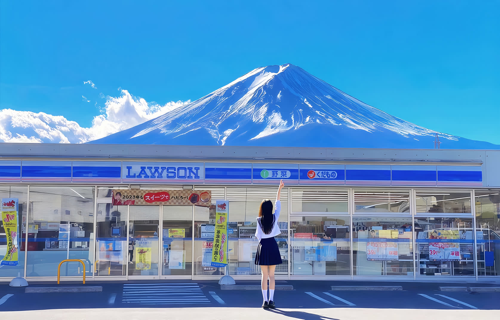 * 두 번째 코스: 가와구치 호수 로손 편의점. 이곳은 후지산의 대표적인 장면을 촬영할 수 있는 인기 명소로, 자유롭게 촬영하고 간단한 식사를 즐길 수 있습니다.