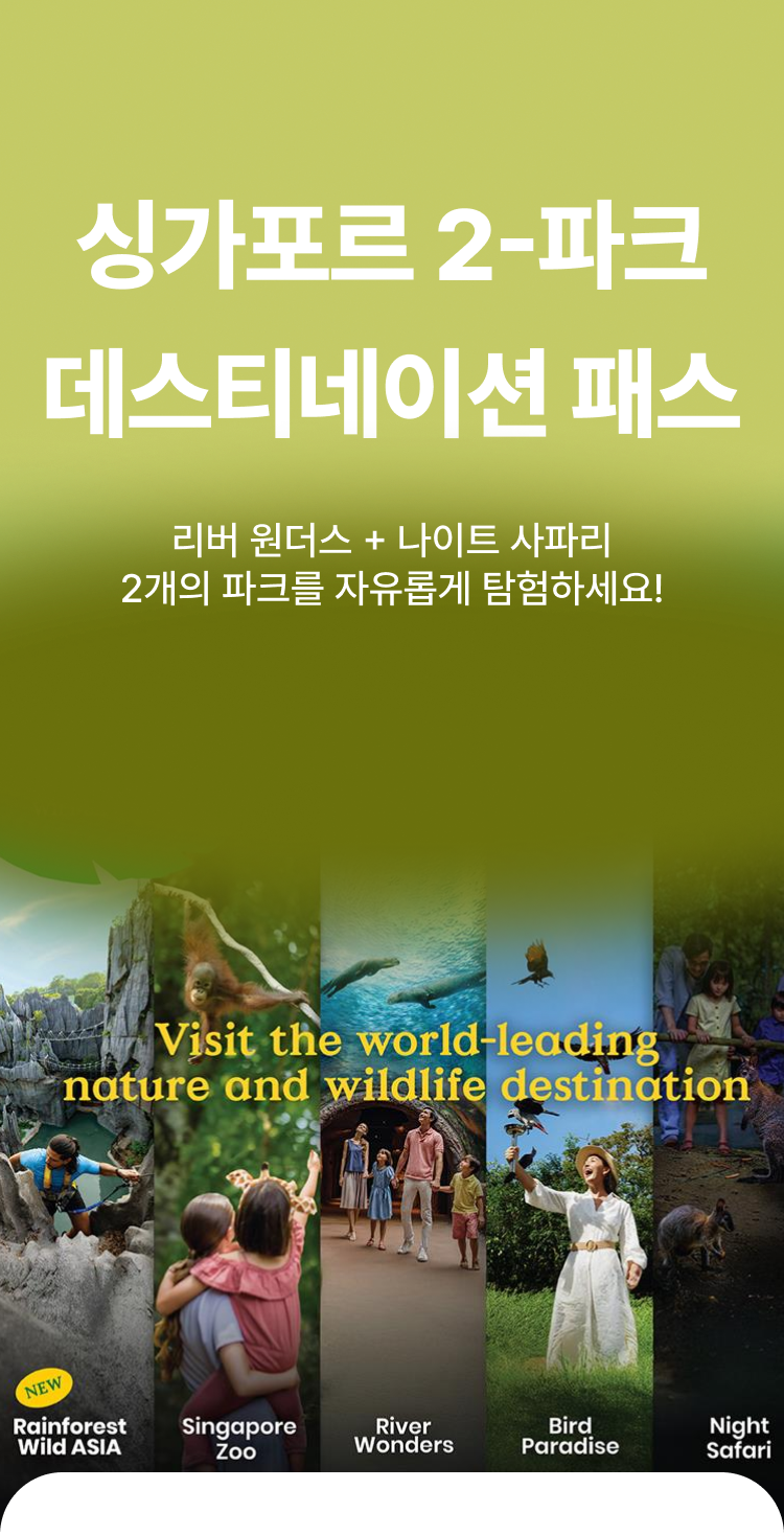개별 구매보다 더 저렴하고 편리하게 이용 가능한 공식 멀티 입장권입니다.현지 매표소 방문 없이 즉시 입장 가능합니다.만다이 야생동물 보호구역의 핵심 파크 2곳을 빠짐없이 탐험하며 잊지 못할 싱가포르 추억을 만드세요.