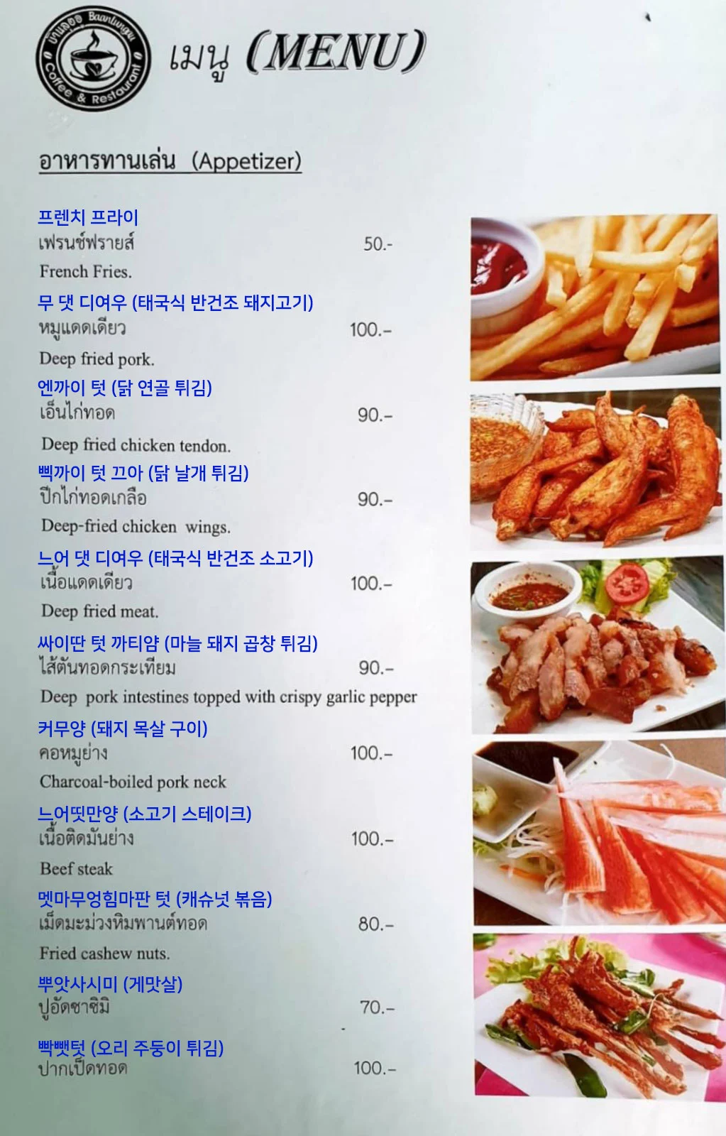 ▶ 주의사항 - ⚠️ 생태계 보존을 위한 반딧불 관람 시 주의사항 배와 반딧불이가 있는 나무 사이에는 최소 2m의 간격을 두어야 합니다. 큰 소음이나 흡연은 불가합니다. 손전등이나 카메라 플래시를 이용한 사진 촬영이 금지됩니다. - 🔸 반딧불 투어 안내 태국의 우기가 시작하는 5월부터 11월 말까지 운영되는 투어입니다 반딧불 개체수에 따라 운영 시기가 조금 달라질 수 있습니다 날씨에 따라 반딧불 활성도가 달라 선명하고 개체 수가 많은 날도 있지만, 반딧불이 잘 보이지 않을 수도 있습니다. 건기 시에는 예약일 기준 최대 30일 이내의 날짜로만 예약 하실 수 있습니다. 반딧불 개체 수 및 활성도에 따라 판매가 종료될 수 있습니다. - 🚩 조인 투어 안내 최소 2인 이상 모객 시 출발 가능한 상품입니다. 출발 하루 전까지 최소 인원 미달 시 취소될 수 있습니다. (투어 진행 어려울 경우 변경/취소 개별 안내) 정시에 출발합니다. 미팅 시간에 늦으시면 노쇼 (No-Show) 처리되며 변경, 취소, 환불이 불가합니다. 미팅장소에 5분 ~ 10분 전에 도착하시는 것을 권장드립니다. 조인 투어로 캐리어, 유모차, 휠체어 등 큰 짐을 가지고 올 경우 투어 참여 불가합니다. - 🌧️ 우천 시 투어 진행 비가 오는 날에도 투어는 정상 진행되니 우산이나 우비를 챙겨주세요. 투어 중 비가 와서 투어가 중단되어도 투어 비용은 환불되지 않습니다. - 🍽️ 레스토랑 메뉴 레스토랑 메뉴와 요금은 아래 사진을 참고해 주세요. 아래 사진에 있는 메뉴 이외에도 현장에서 다양한 메뉴를 주문하실 수 있으며 메뉴와 요금은 변동될 수 있습니다. ✔️ 식사 비용은 포함되어 있지 않습니다. ▶ 준비물 개인경비 ▶ 아동 정책 아동 : 만 3세 ~ 11세 유아 : 만 2세 이하