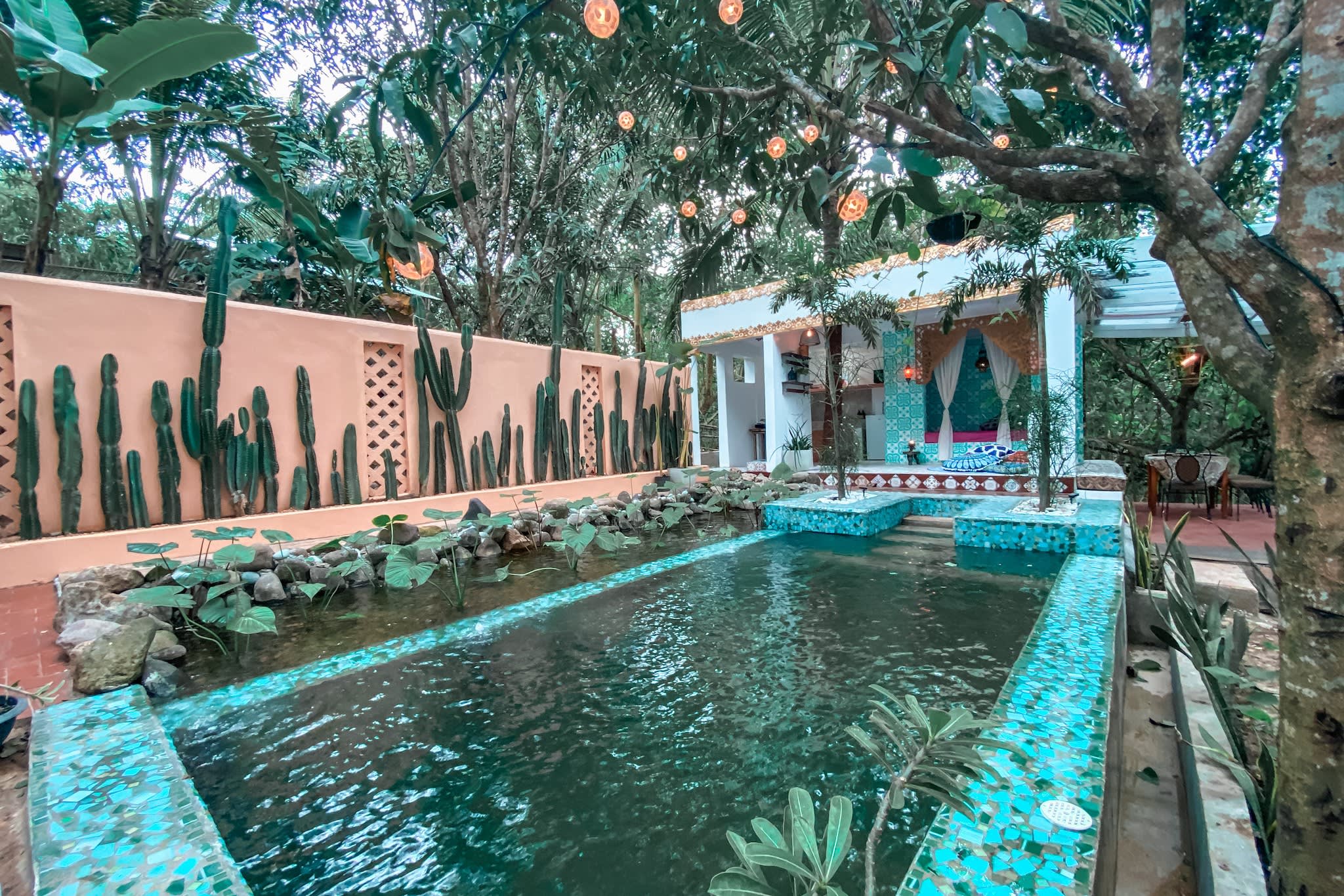 * 울창한 녹음과 평온한 자연으로 둘러싸인 프라이빗 천연 수영장에서 상쾌하게 수영을 즐겨보세요.