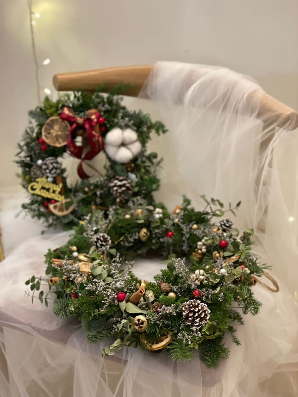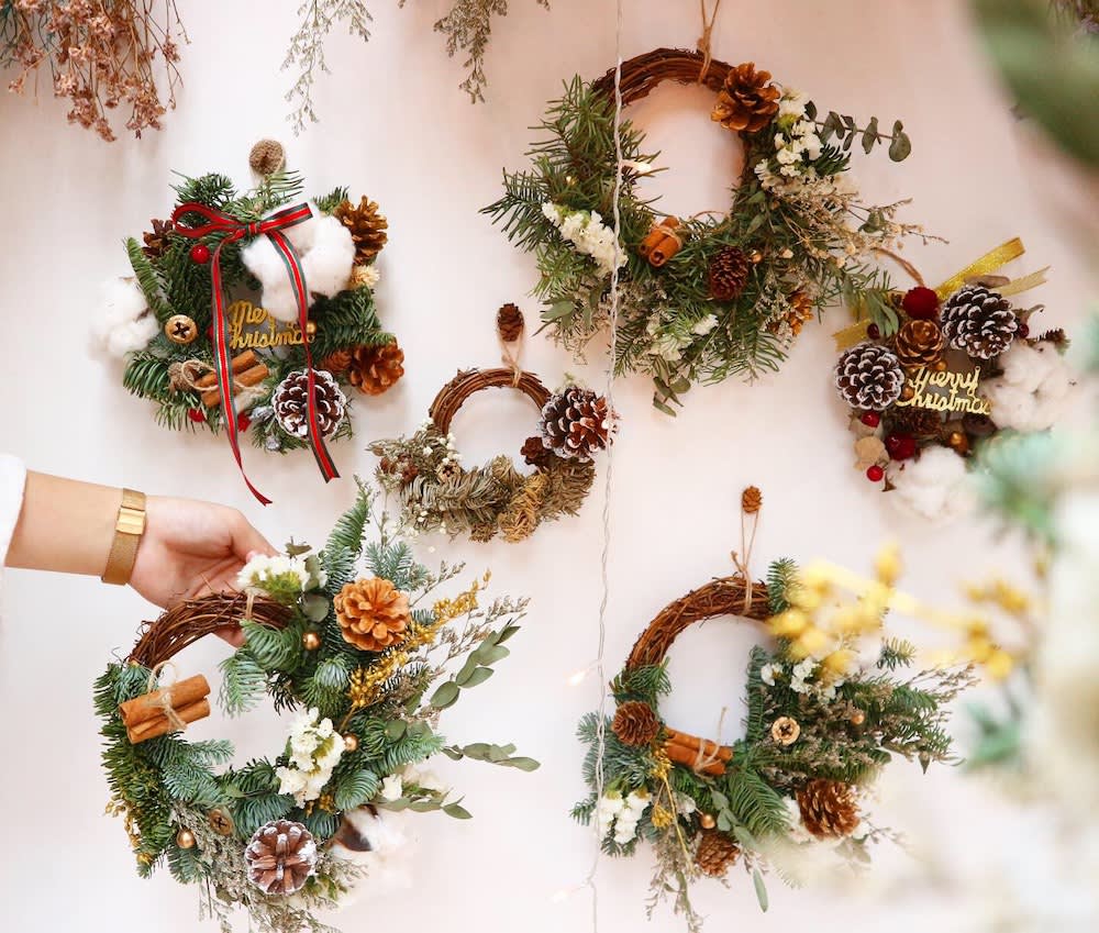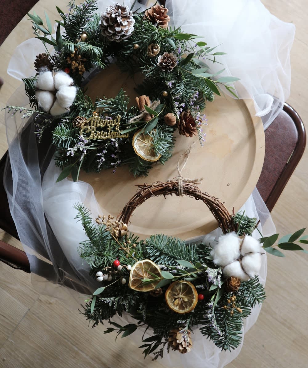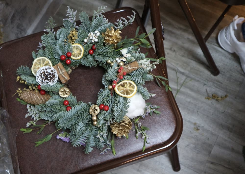 크리스마스 소나무 본연의 향이 너무 좋아요🎄❤ 말려도 향이 너무 좋아요✨ 1년 보관 후 상큼한 녹색에서 연한 녹색으로✨ / 올해 크리스마스 워크숍은 모두 가능합니다 크리스마스 리스 / 크리스마스 플라워 카드 / 미니 크리스마스 트리🎄 (맞춤화하거나 워크샵에 참석할 수 있음) / #크리스마스화환 (신선한 크리스마스 소나무, 신선한 꽃, 황금 말린 과일, 솔방울, 드라이 플라워 재료, 리본, 만화 캐릭터 및 인형) -직경 25cm 또는 35cm -2시간