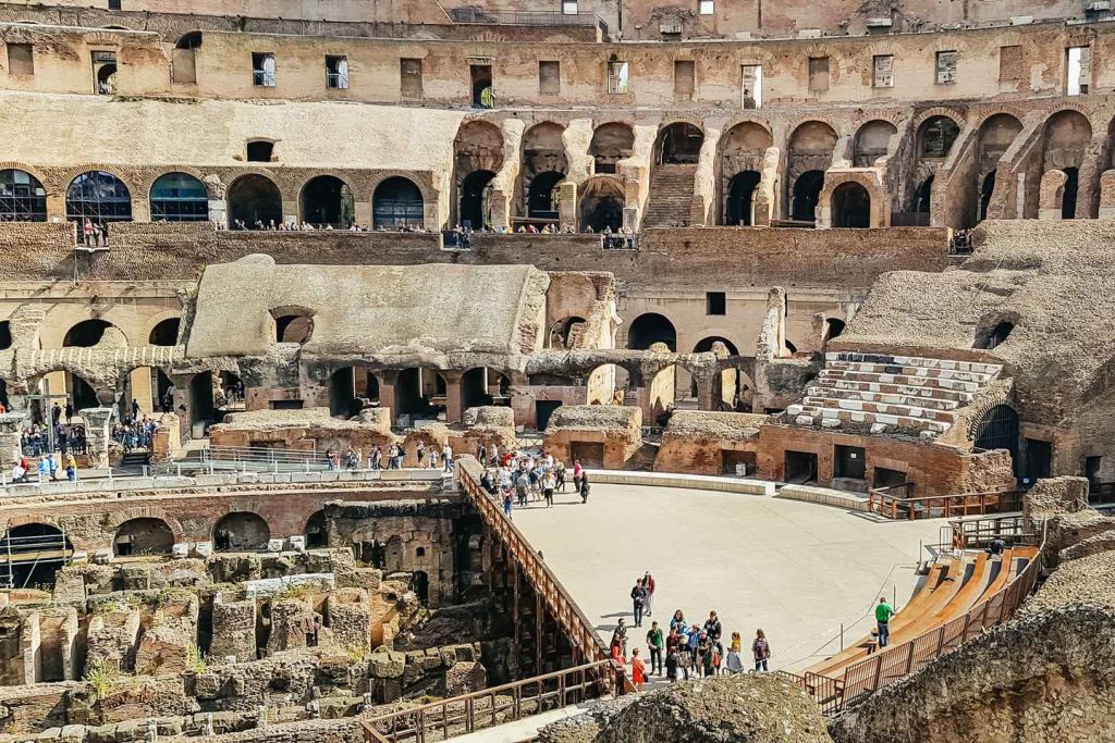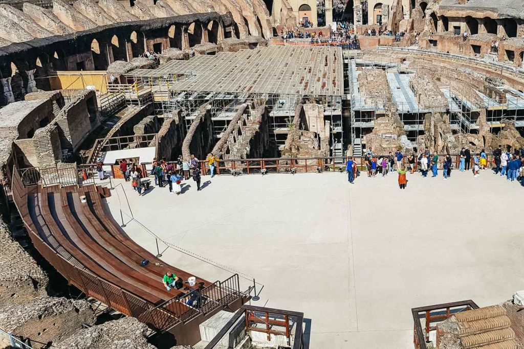 아레나 층에 서서 검투사의 발자취를 따라 걸어보세요. 함성을 지르는 관중들의 모습을 상상해보세요. 그런 다음 콜로세움 지하로 내려가 콜로세움과 검투사들이 훈련을 받던 루두스 마гну스(Ludus Magnus)를 연결하는 터널을 둘러보세요.