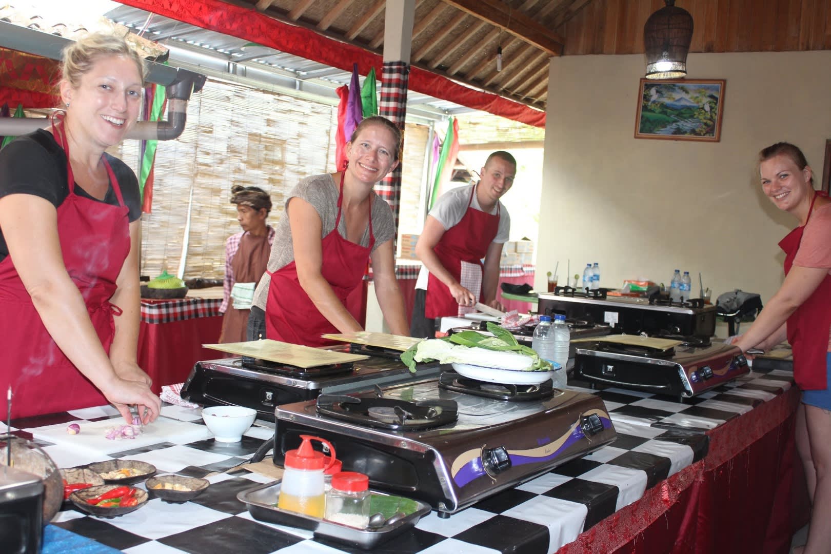 인도네시아 우붓에서 진정한 현지 경험, 수박 쿠킹 클래스에 참여해 보세요. 발리 전통 요리 9가지를 직접 만들어보고, 수업이 끝난 후 뷔페 식사까지 즐겨보세요. 현지 시장 방문으로 시작되는 이 투어에서는 직접 신선한 재료를 고르며 현지인처럼 장을 보는 특별한 경험을 즐기실 수 있습니다! 우붓의 논밭에 들러 그곳의 문화와 음식 역사에 대해서도 알아보세요. 영어가 가능한 인도네시아 셰프의 안내와 함께 발리 현지 가정에서 쿠킹 클래스가 진행됩니다. 열심히 요리한 발리 음식을 맛보고 집으로 가져가세요!