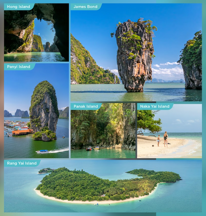다음으로, 고전 영화 "황금 총을 가진 사나이"에 등장한 것으로 유명한 전설적인 제임스 본드 섬을 방문하여 에메랄드빛 바다 위로 웅장하게 솟아올라 있는 석회암 절벽을 감상합니다.