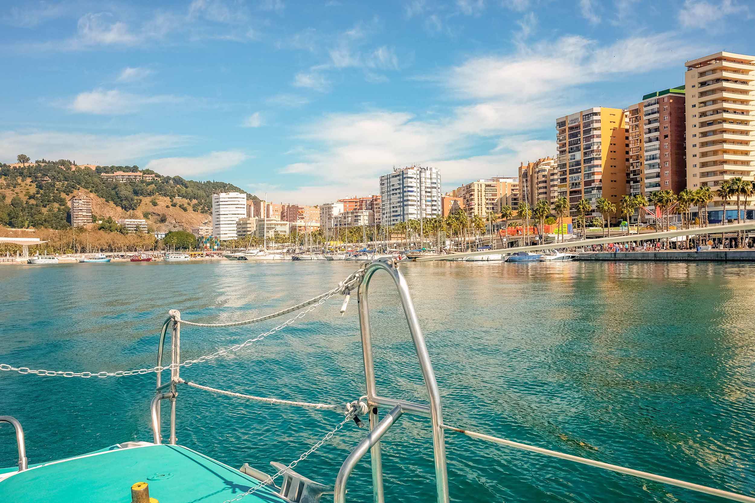 * 카타마란 갑판에서 말라가의 아름다운 해안을 경험하고 바다에서 도시의 멋진 전망을 감상하세요.