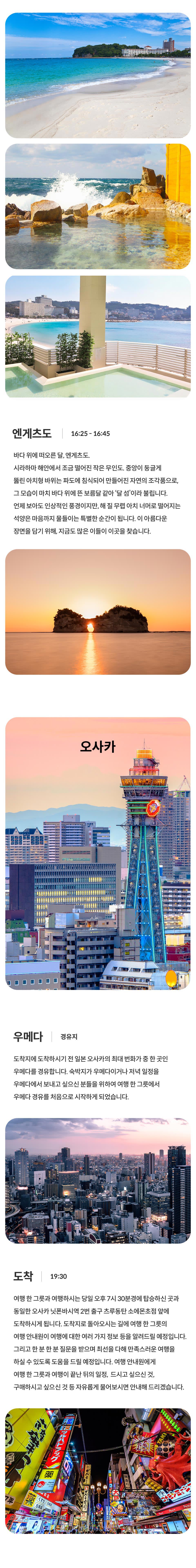 📌 [안내 사항] - 한국인 여행 안내원이 여행을 인도합니다. - 여행 중 각 관광지의 안내는 물론, 일본 관서 지방 오사카 여행에 관련된 알찬 정보를 안내해 드리겠습니다. 그러므로 가능하시다면 본격적인 여행의 시작인 첫째 날 혹은 둘째 날에 여행 한 그릇의 여행 상품을 이용하시는 것을 권장해드리고 있습니다. - 여행 한 그릇의 여행 안내원은 불필요한 설명은 하지 않습니다. 여행 중 이동 시간의 약 1/3 정도만 알차게 설명해드려, 충분한 휴식이 가능합니다. - 여행 한 그릇 소속의 모든 여행 안내원은 여행이 끝난 후의 일정과 여행에 대한 전반적인 궁금하신 사항에 대해 해소해 드릴 수 있는 능력이 있습니다. 여행 중 궁금하신 사항에 대해 모든 답변을 여행 한 그릇과 여행이 끝나더라도 연락이 지속되어 믿을 수 있는 여행할 수 있습니다. 편한 마음으로 여행하세요.