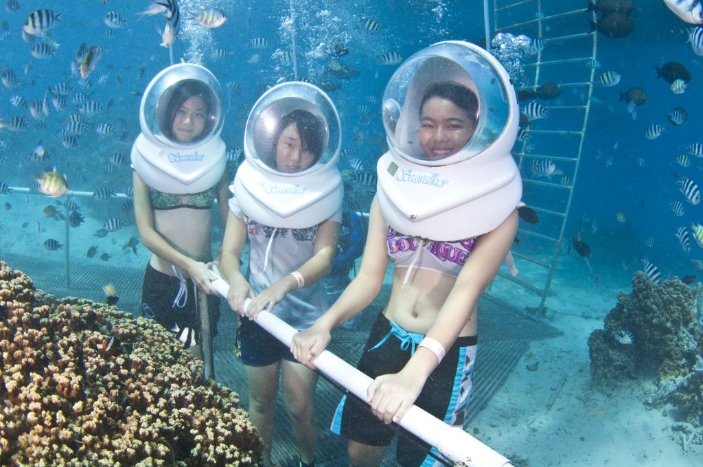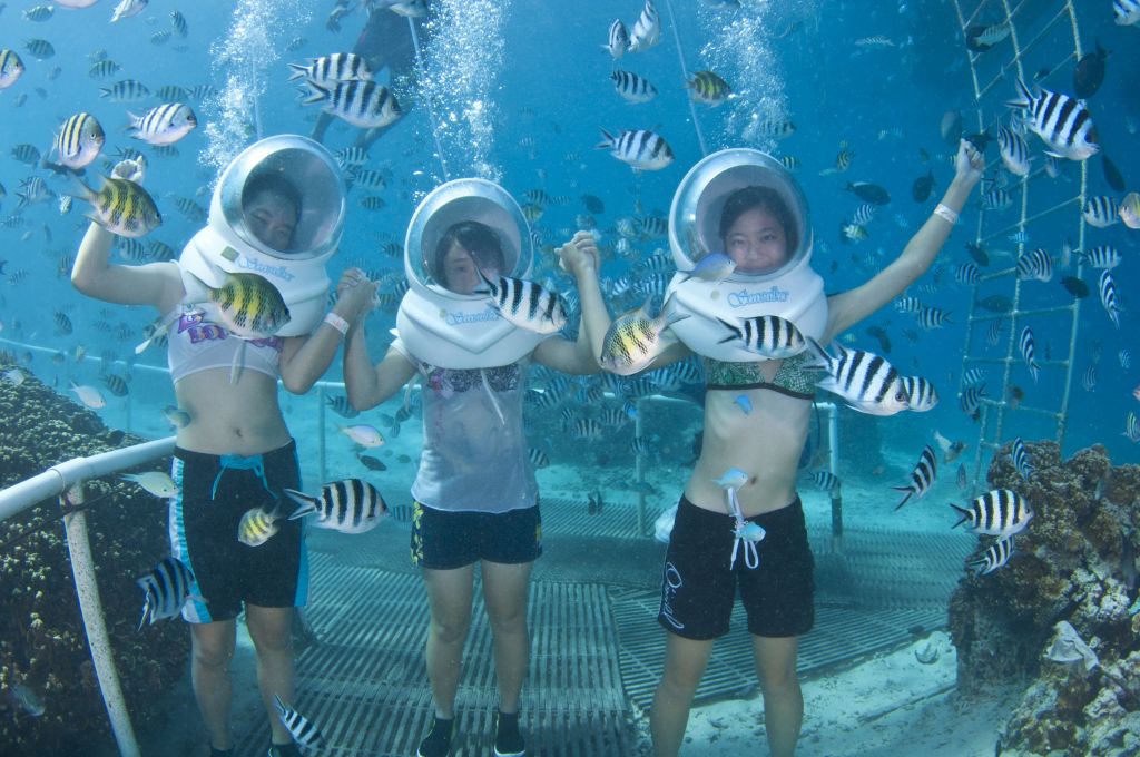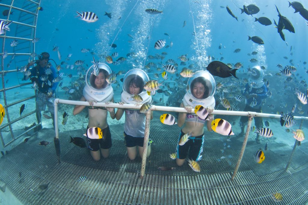 산소 헬멧을 쓰고 숨 쉬며 바닷속을 걷는 새로운 해양 체험