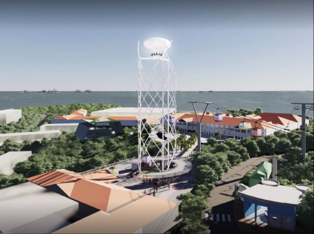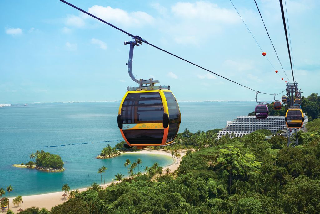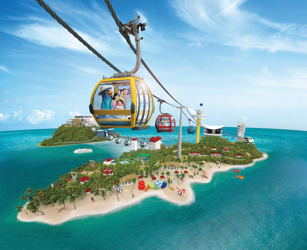 도시의 가장 높은 마운트 페이버 힐에서 케이블카를 탑승하여 센토사 섬으로 갑니다.