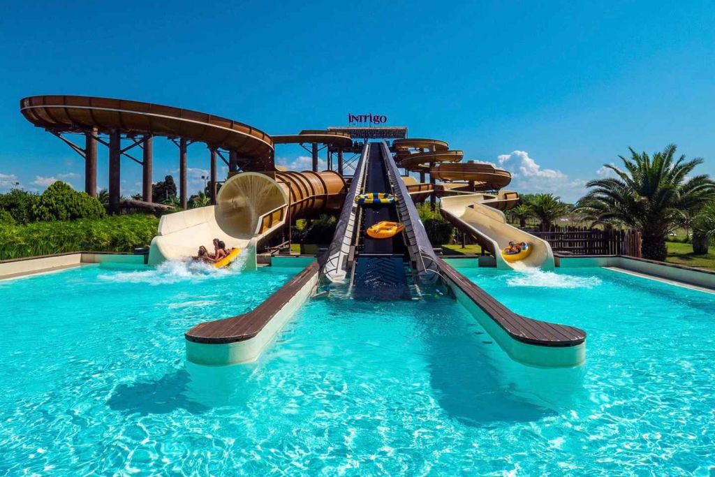 수백 미터의 슬라이드를 탐험하세요. 짜릿한 래프팅을 즐길 수 있는 맥시 슬라이드 '인트리고', 어두운 코스의 '트위스터', 아드레날린이 솟구치는 '카미카제' 슬라이드 2개, 재미있는 '아나콘다' 파라볼릭, 환상적인 '서핑 힐' 등이 있습니다.