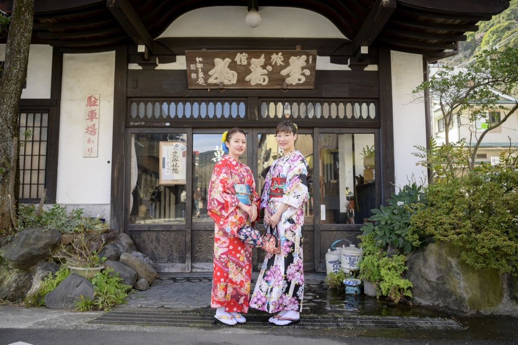 하코네유모토역 근처에 위치한 "기모노 대여 사쿠라히메"는 관광 중 기모노를 입어볼 수 있는 좋은 장소입니다.