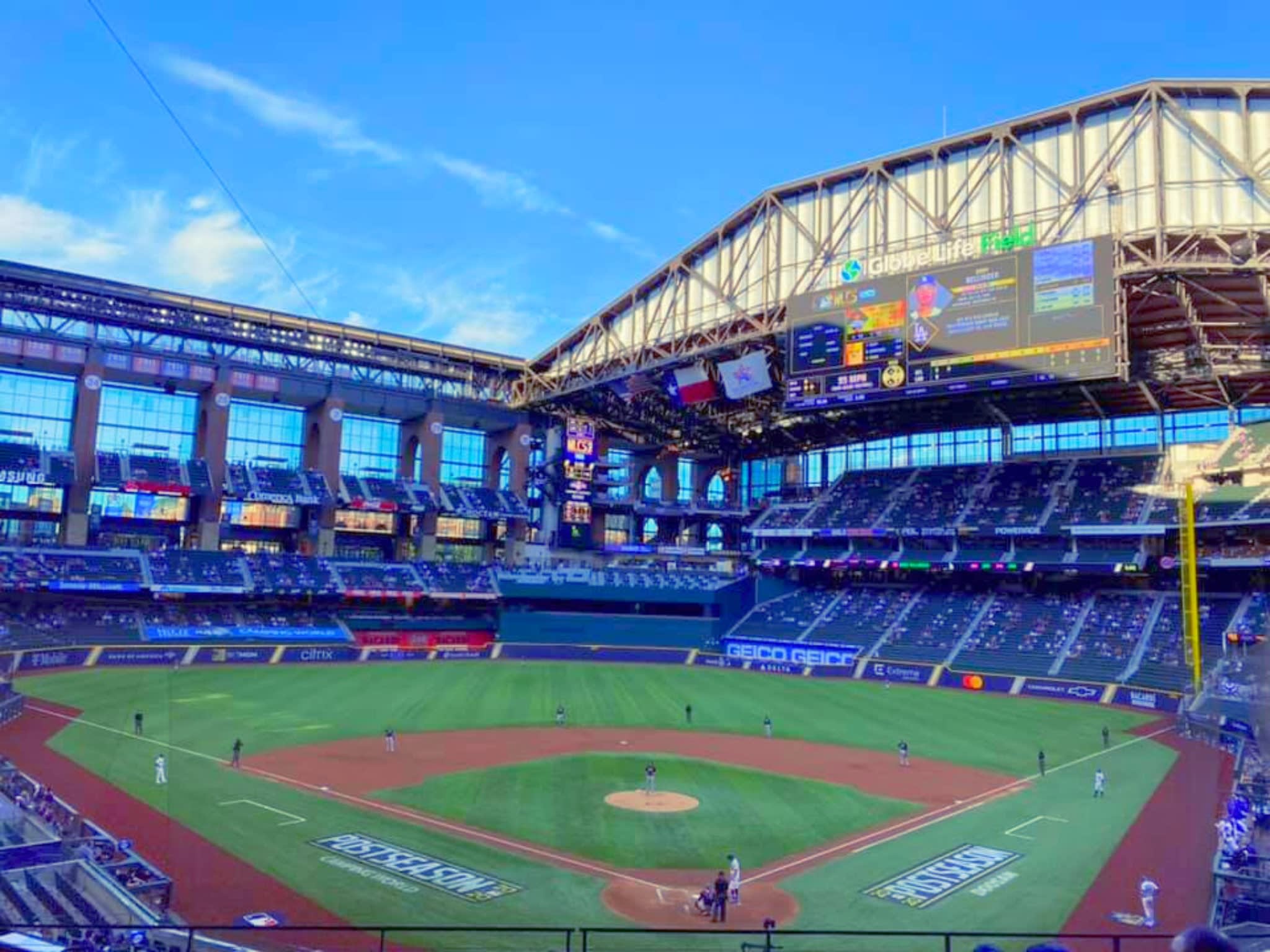 텍사스주 알링턴에 위치한 글로브 라이프 필드는 개폐식 지붕과 에어컨을 갖추고 있어 텍사스의 뜨거운 여름에도 쾌적한 환경을 제공합니다. 이닝 사이에는 다양한 인터랙티브 게임과 액티비티에 참여하고, 경기장 전체에서 라이브 음악을 즐길 수 있습니다.