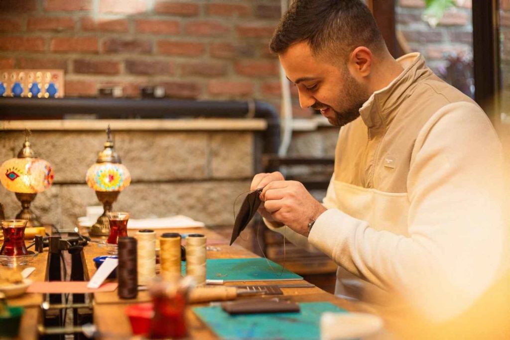 이스탄불 간식과 음료가 있는 가죽 공예 워크샵