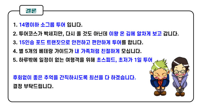 ☞ 하루밖에 일정이 없는 여행객을 위해 초스피드, 초절전 1일 투어 입니다.