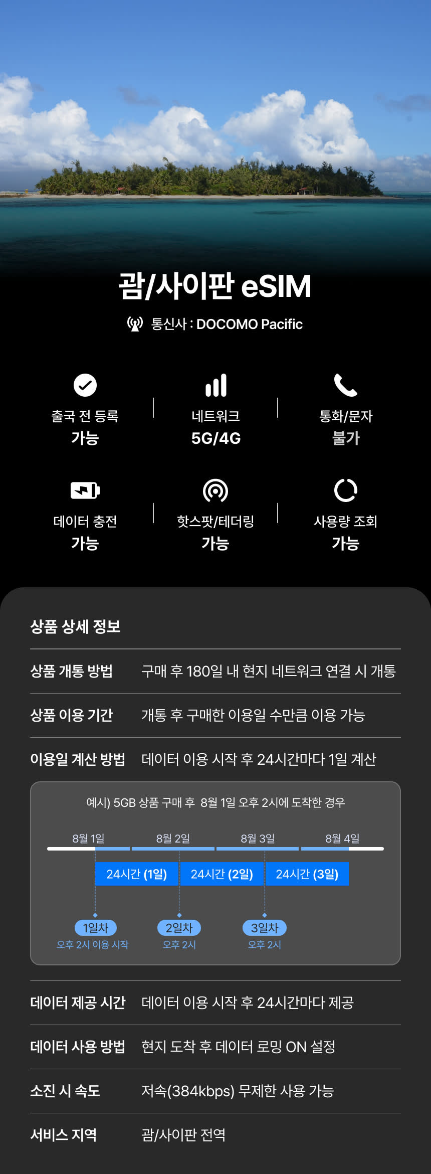 괌/사이판 이심 eSIM 제공량 모두 소진 이후에도 무제한 데이터!