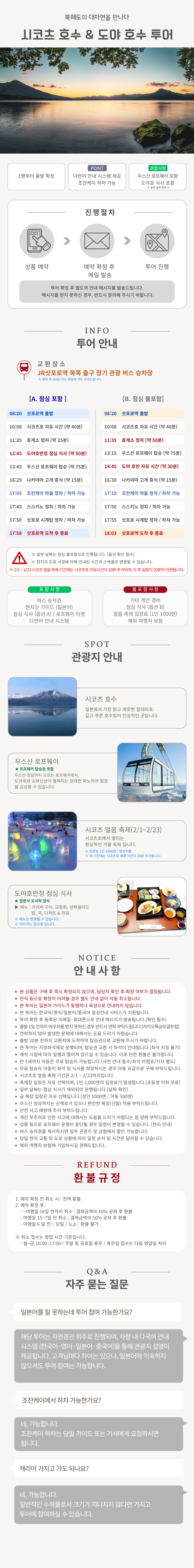 시코츠 호와 도야 호를 방문하는 홋카이도 자연 일정입니다.