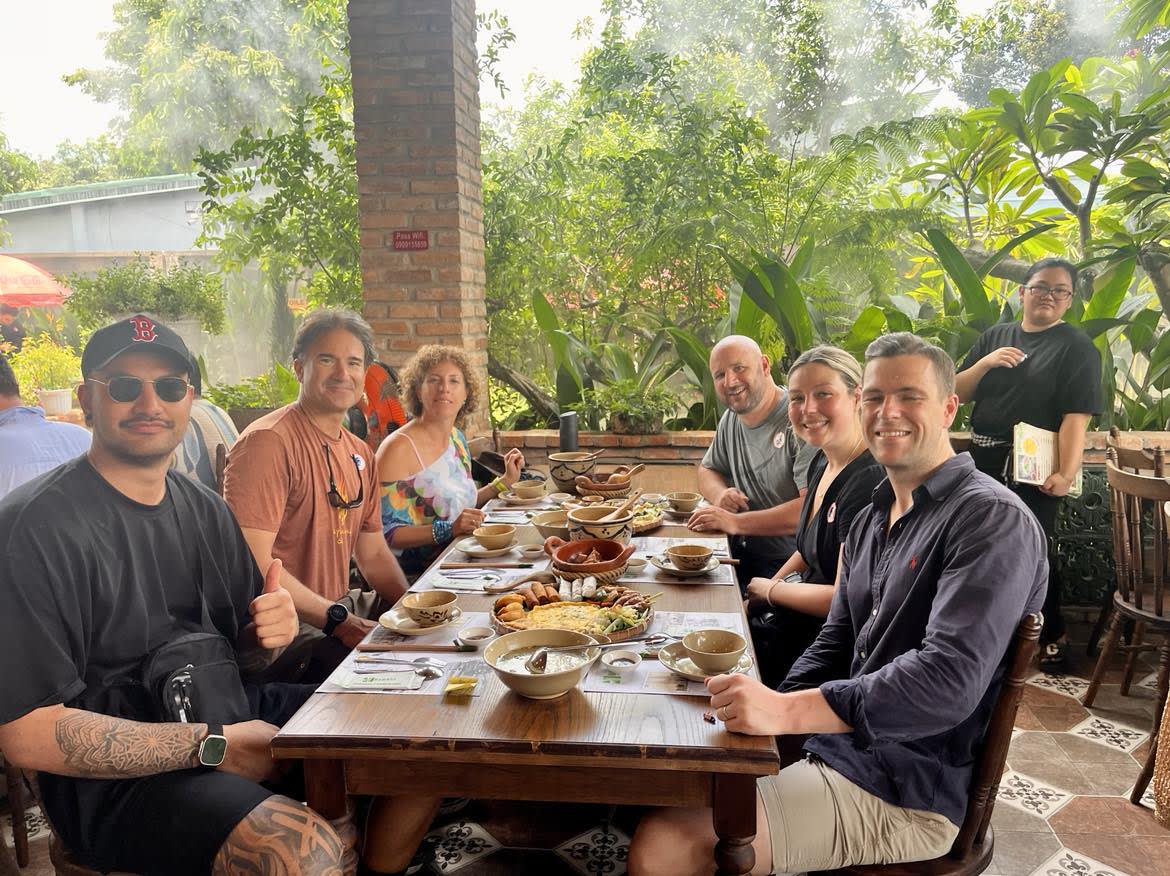 현지 식당에서 점심 식사(비건 옵션 이용 가능)를 즐기신 후 메콩 델타의 중심부인 미토로 이동합니다. 메콩강을 따라 보트를 타고, 코코넛 나무가 늘어선 운하를 따라 삼판을 타고, 현지인 집에 방문하여 과일과 꿀차를 맛보고, 전통 음악을 즐겨보세요.