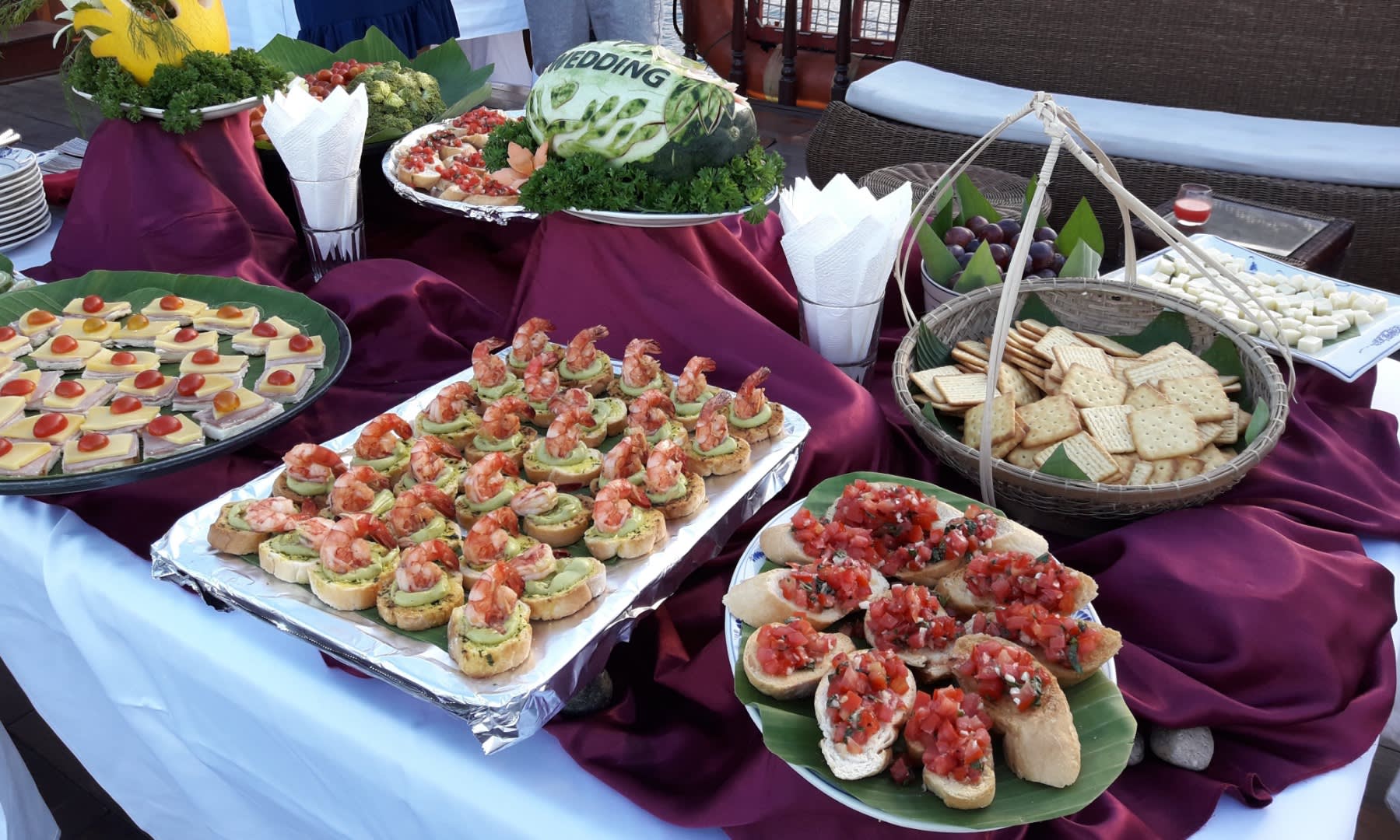 나트랑만의 에메랄드빛 바다 위 크루즈에서 낭만적이고 호화로운 저녁 식사, 맛있는 칵테일, 평화로운 음악 공연을 즐겨보세요. 베트남의 유명 크루즈인 엠퍼러 크루즈에서 맛있는 음식, 트로피컬 칵테일, 라이브 음악을 즐기며 여행 중 쌓인 피로를 풀 수 있어요. 크루즈에 오르면 웰컴 드링크를 마시며 긴장을 풀고 천천히 밤에 녹아드세요. 친절하고 숙련된 스태프가 여러분을 테이블로 안내해 드립니다. 테이블에는 5코스의 고급 요리가 기다리고 있습니다. 데크에 앉아 식사를 하며 해안 도시의 눈부신 야경을 감상하세요. 음료를 한 잔 더 마시며 다채롭고 황홀한 나트랑을 배경으로 라이브 음악에 맞추어 춤을 춰보는 건 어떨까요?