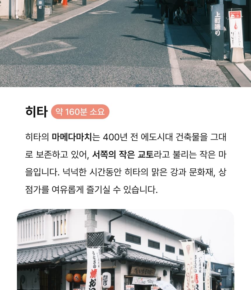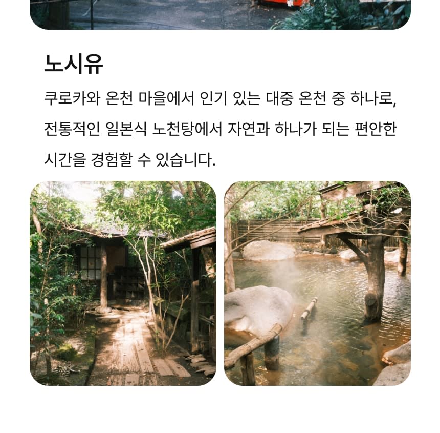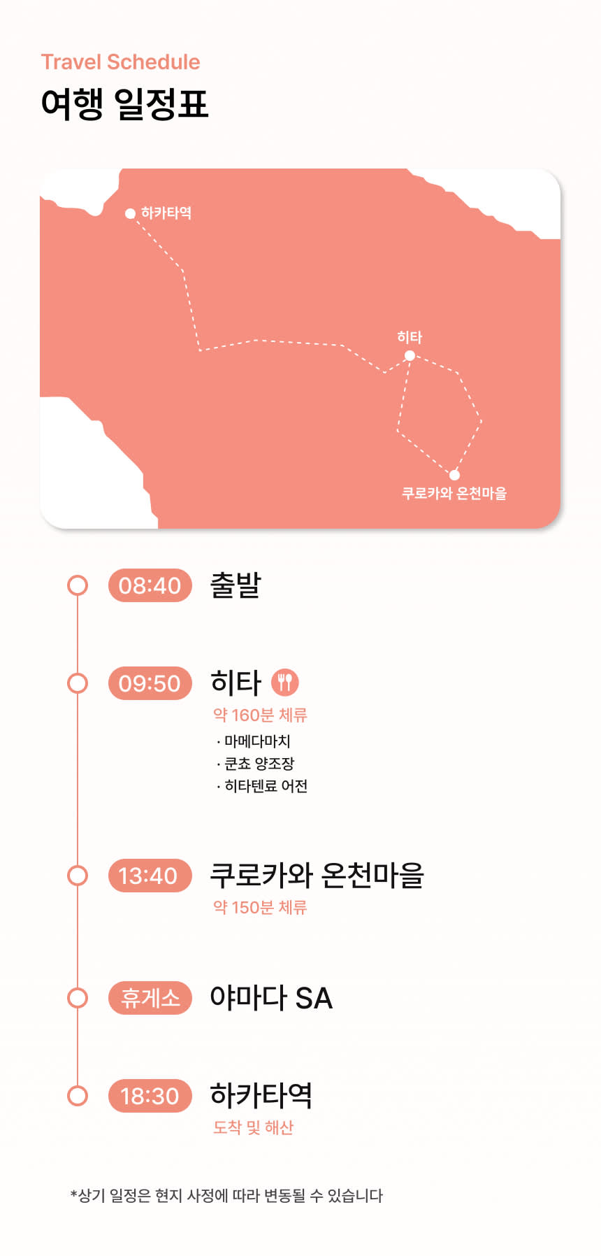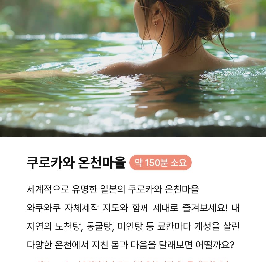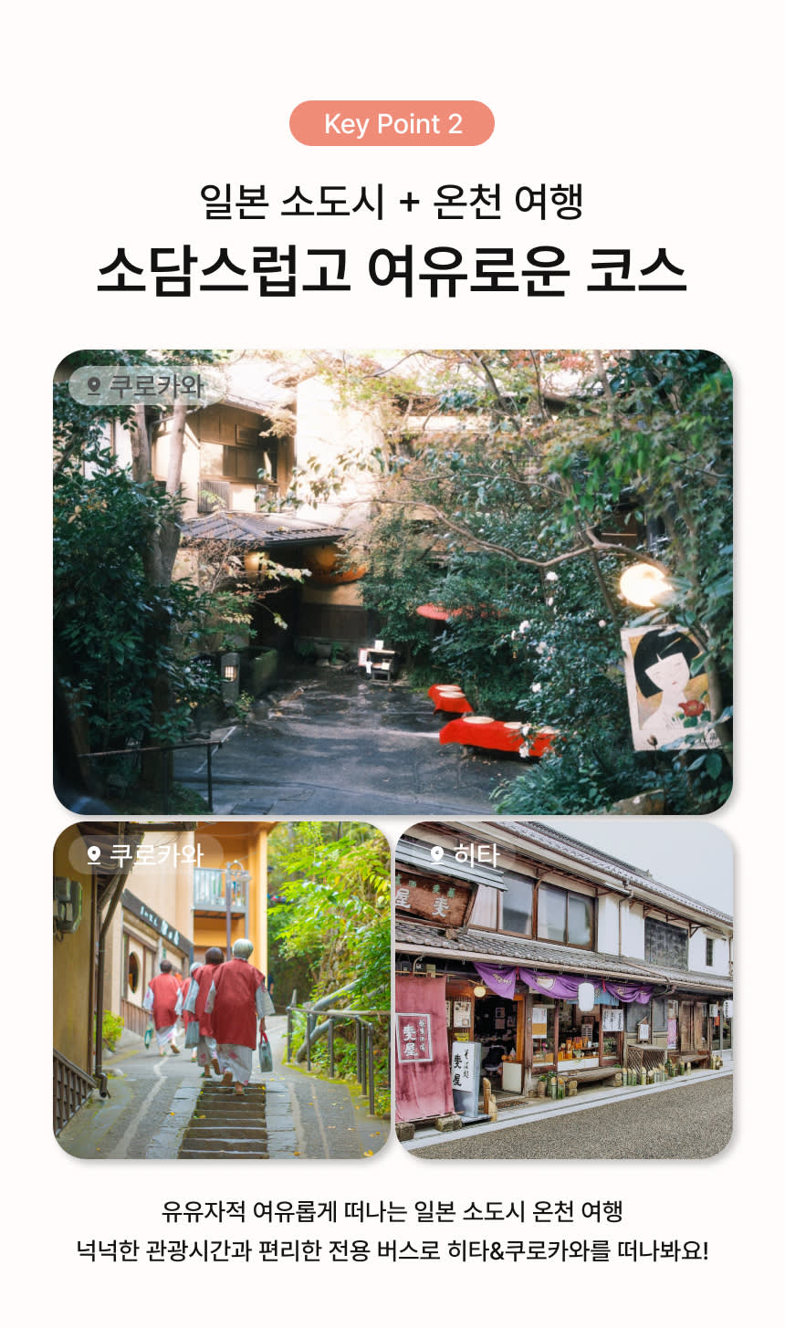 시간에 쫓기지 않고, 천천히 나만의 속도로! 작고 조용한 일본의 전통 마을 히타,따뜻한 온천향이 가득한 쿠로카와 온천마을을 여유롭게 산책하며, 몸도 마음도 말랑해지는 하루를 만나보세요. 한국인 가이드가 함께해 언어 걱정 없이 편안하게 즐기실 수 있습니다😊