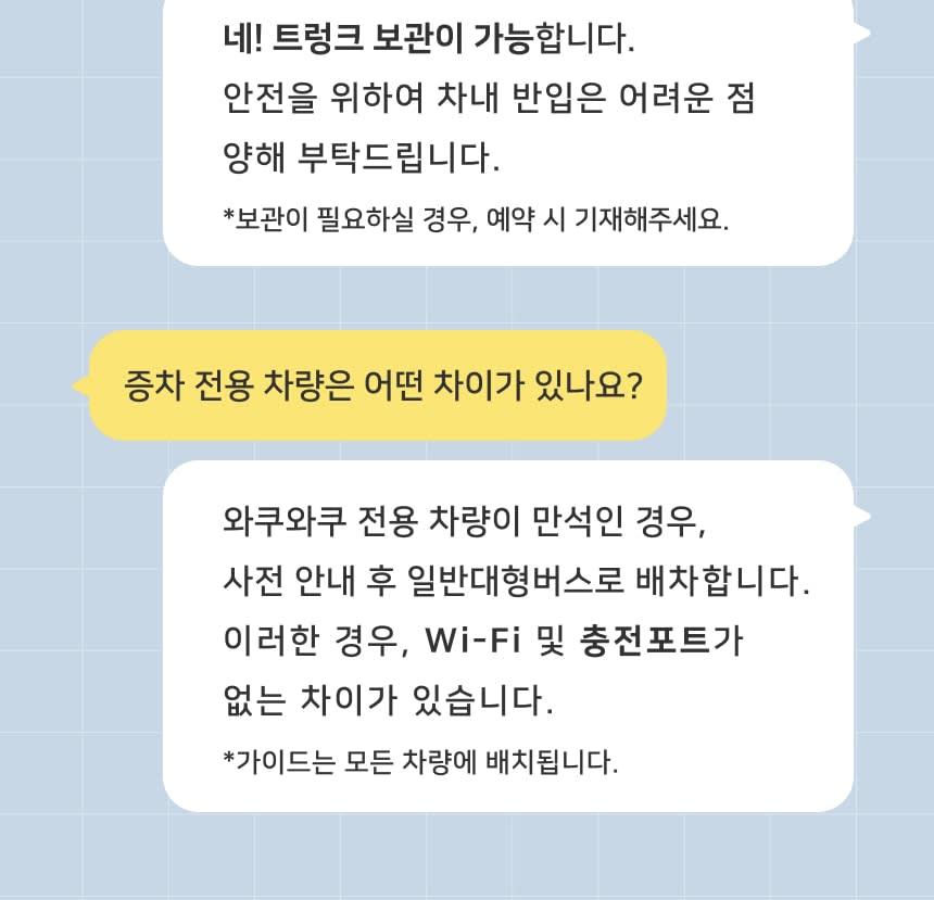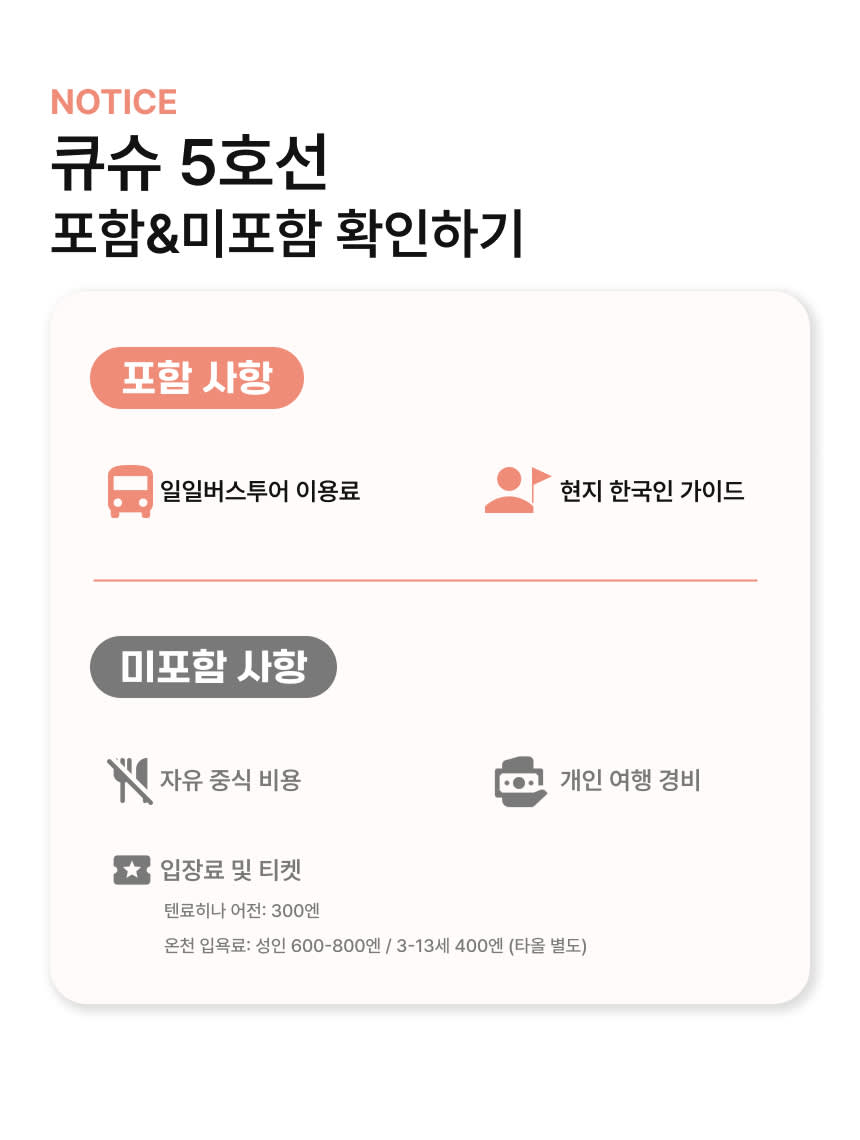 ✅ 전문 한국인 가이드 동행으로 더 깊이 있는 여행 🚌 와쿠와쿠 전용 레드버스 탑승 – 눈에 띄는 감성 포토버스 🏯 고쿠라성 입장권 1매 제공 (사전 공지없이 조기 종료될 수 있습니다) 🗺️ 온천 & 맛집 지도 제공 – 로컬 감성 100% 경험 🛍️ 쇼핑몰 할인 쿠폰 증정 – 여행의 소소한 즐거움 💬 가이드 추천 맛집 & 카페로 취향 저격