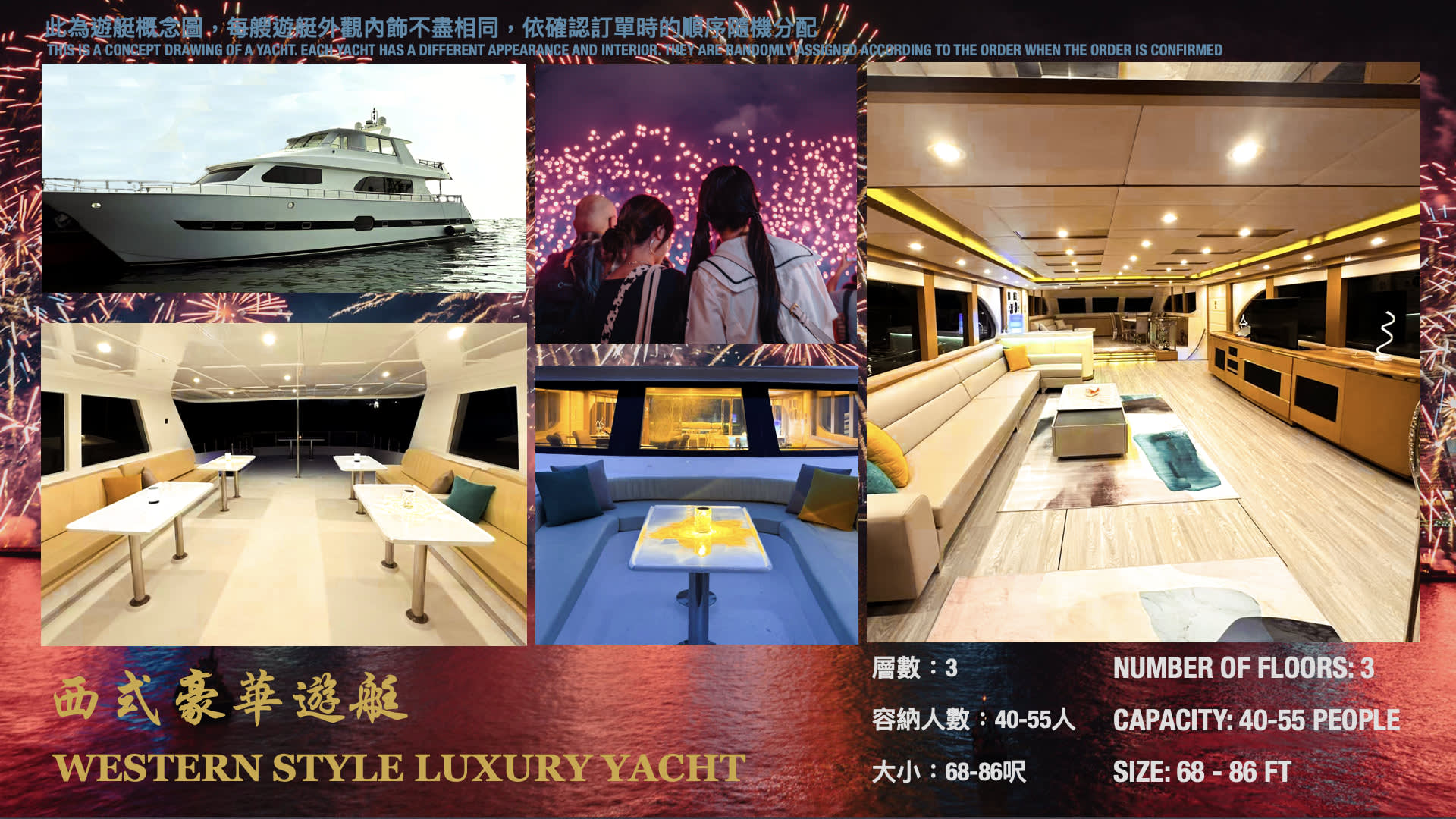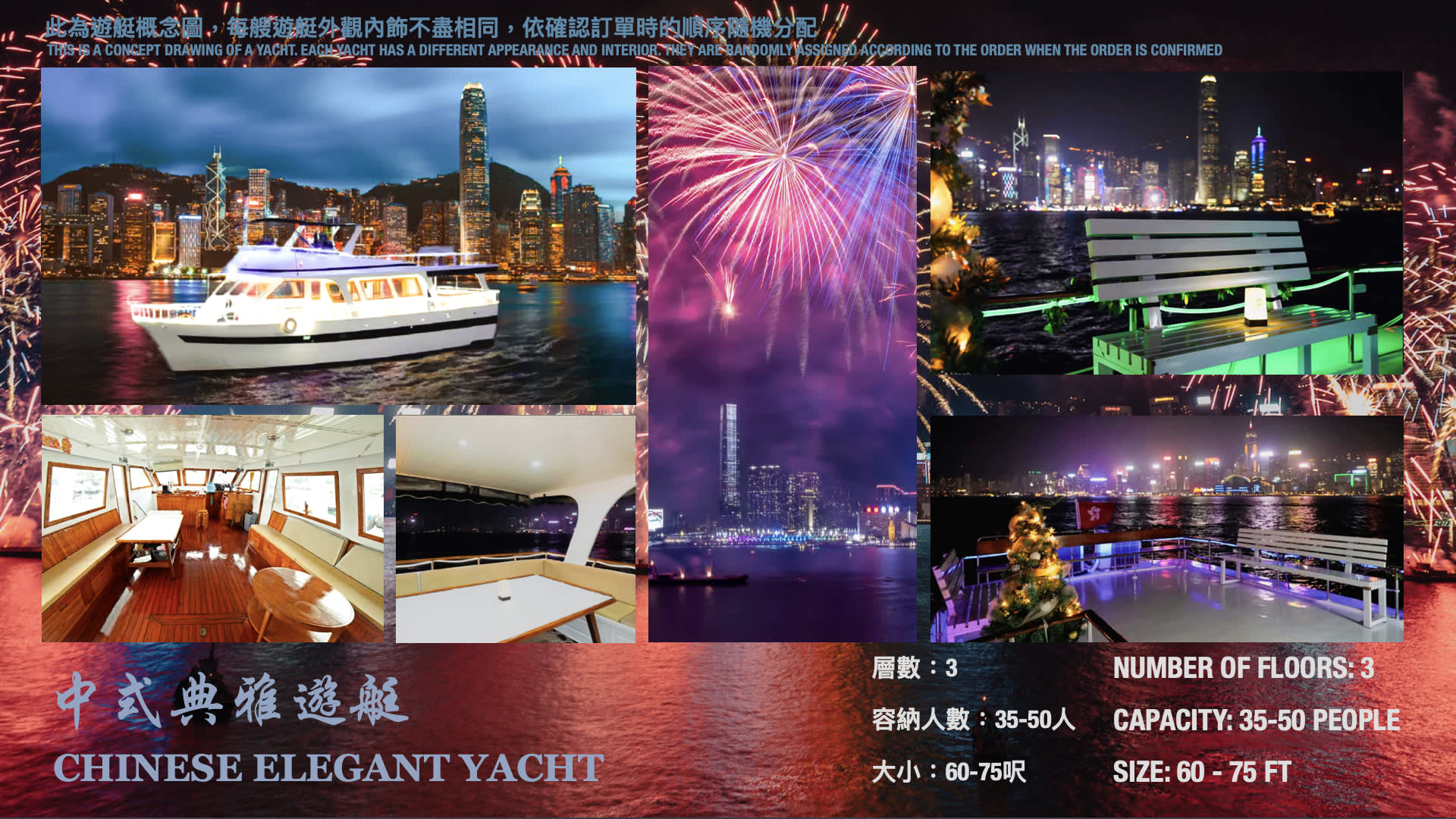 • 17:30 이전- 센트럴 9번 부두 입구의 등록처에서 체크인 및 분류를 진행합니다. 분류 후 직원의 안내에 따라 지정된 유람선 정박지로 이동하여 탑승을 기다립니다. 17:30-18:00- 직원의 안내에 따라 질서정연하게 승선합니다(부두 혼잡도에 따라 승선 시간이 약간 앞당겨지거나 늦춰질 수 있습니다). 18:00-19:30- 유람선을 타고 빅토리아 하버를 순항하며 세계 3대 야경을 감상하고, 저희가 제공하는 맛있는 과일, 디저트, 간식, 엄선된 다과를 즐기세요(자극적인 냄새가 없는 음식은 직접 가져오셔도 됩니다). 19:30- 불꽃놀이 관람 장소에 도착하여 대기합니다. 20:00 - 20:23- 홍콩 설날 불꽃놀이를 감상하며 잊지 못할 추억을 만드세요. 20:30- 야우마테이 태풍 대피소 5번 계단에서 질서정연하게 하선합니다(해상 교통 상황에 따라 하선 시간이 약간 앞당겨지거나 늦춰질 수 있습니다).