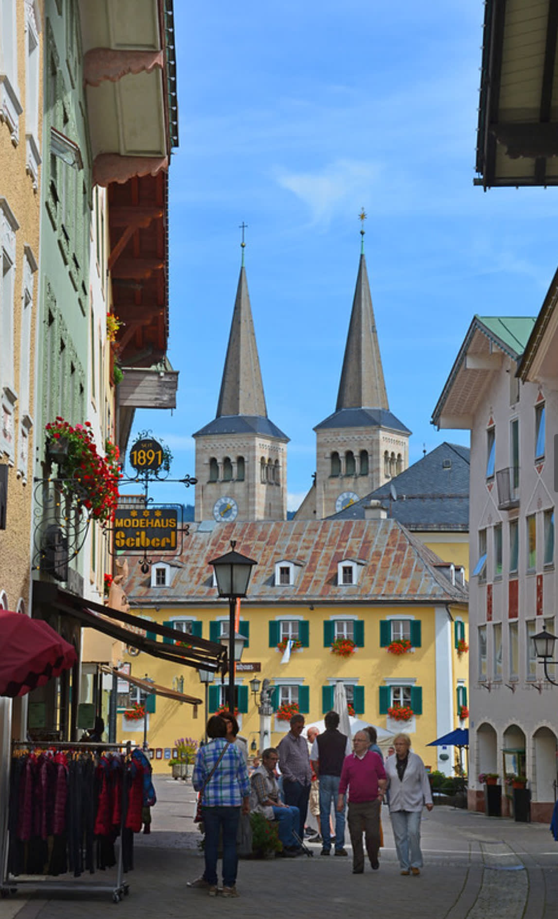 그곳에서 쾨니히 호수의 고요한 매력에 빠져보세요. 상징적인 말러빈켈을 포함한 우뚝 솟은 암벽과 전통적인 바이에른 건축물이 어우러져 조용한 사색에 완벽한 목가적인 분위기를 자아내는 평화로운 전기 보트 투어를 즐겨보세요. 해가 지기 시작하면 쾨니히 호수와 베르히테스가덴 구시가지를 뒤로하고 잘츠부르크로 돌아갑니다.