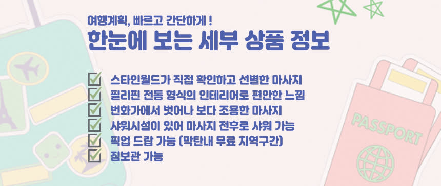 • 필리핀 전통 가옥 컨셉의 아늑한 인테리와 힐링되는 고급마사지