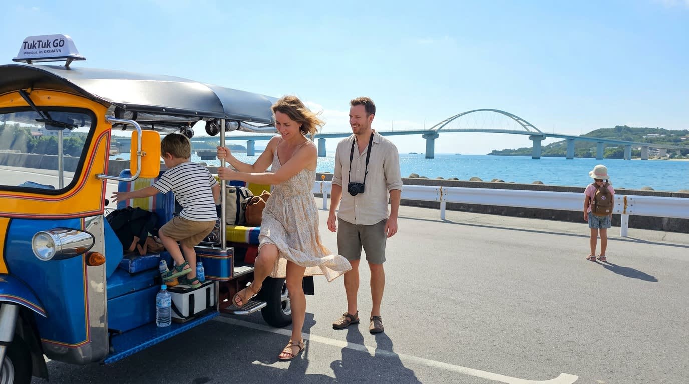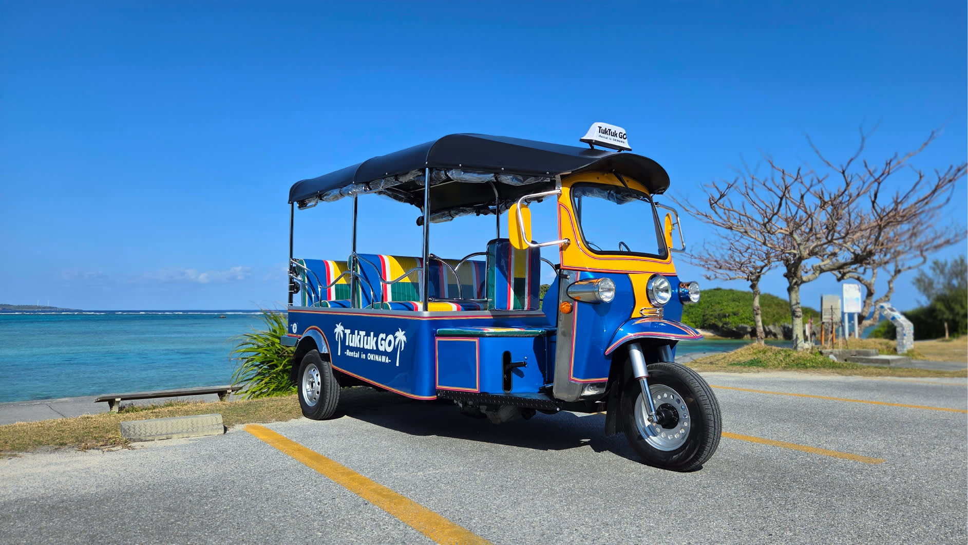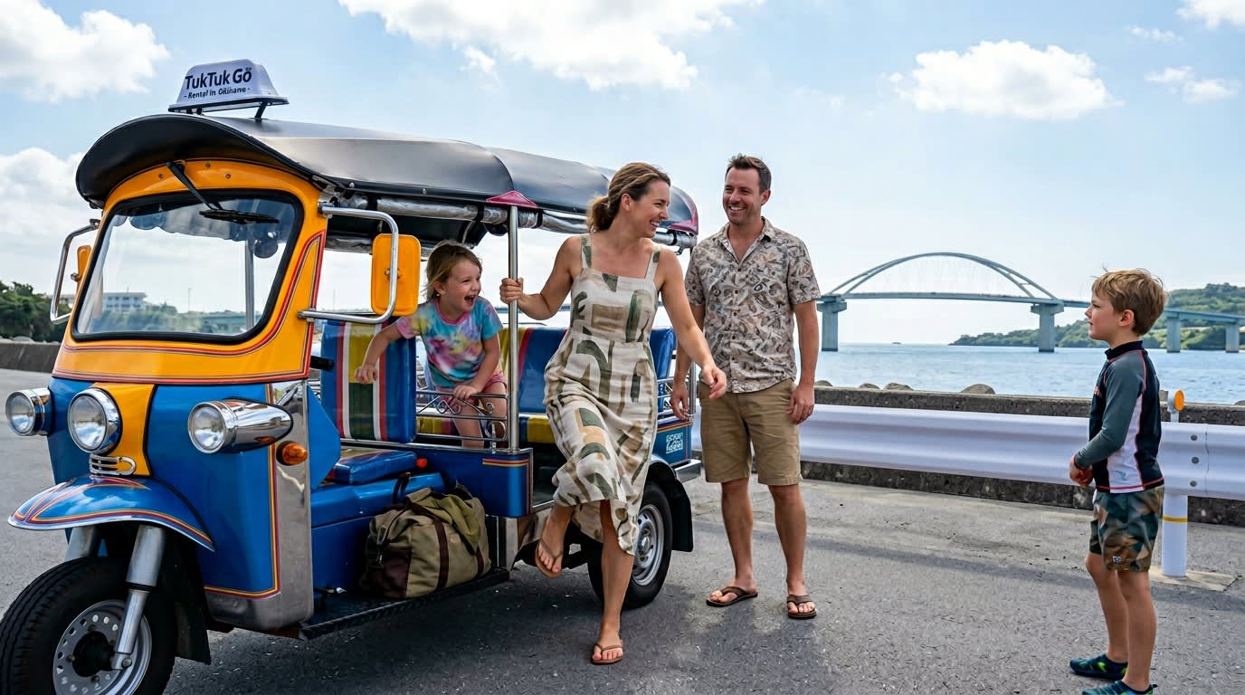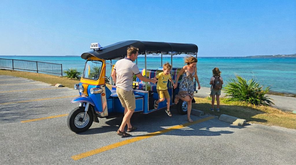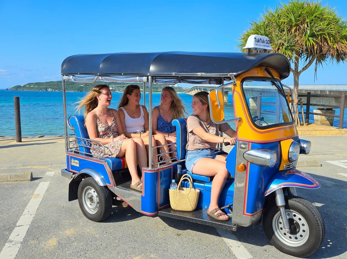 * 보통 자동차 면허로 운전할 수 있는 툭툭 * AT 차량이므로 초보자도 쉽게 운전 가능 * 오키나와 북부 해안 드라이브를 자유롭게 즐길 수 있음 * 츄라우미 수족관에서 차로 약 3분 거리의 좋은 접근성 * 4인승 / 7인승 차량 준비 * 커플, 친구, 가족 여행에 추천