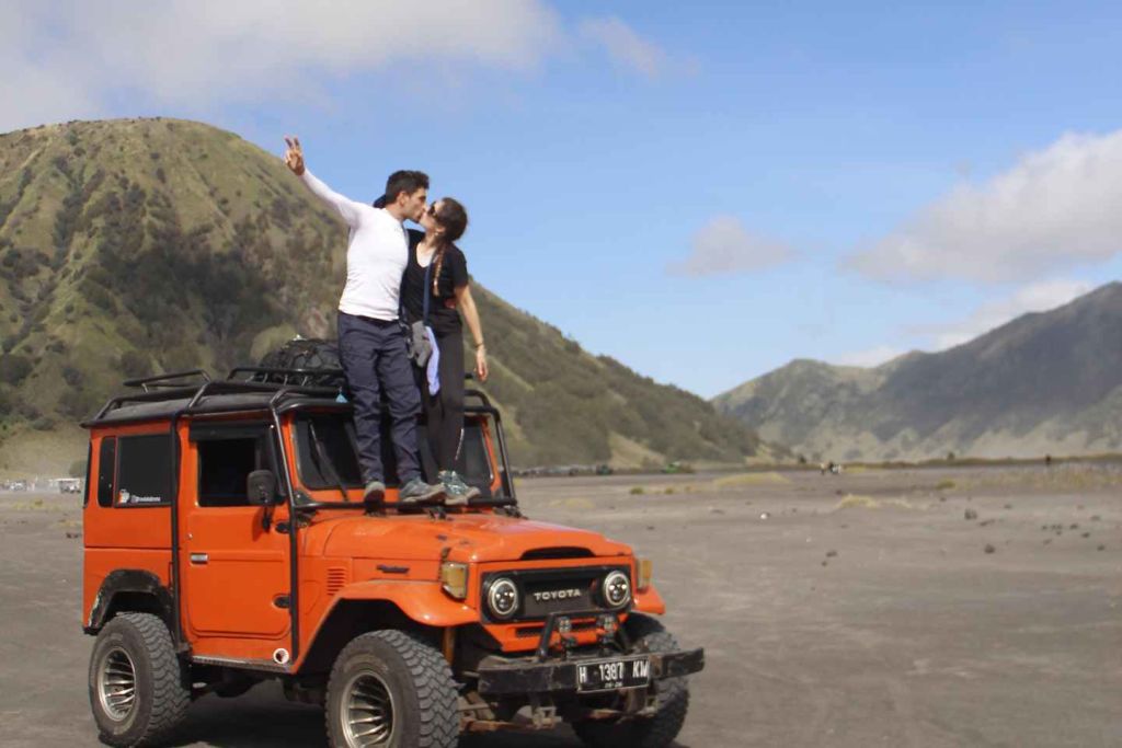 말랑에서 자정 00:30에 출발하여 4x4 지프를 이용해 브로모 산 지역에서 가장 유명한 전망대/일출 포인트로 이동합니다. 교통 상황에 따라 달라질 수 있습니다. 해당 위치에서 동자바에서 가장 아름다운 일출을 산과 화산을 배경으로 감상할 수 있습니다. 이후 지프는 브로모 산 지역의 모래 바다로 모험 여행을 계속합니다.