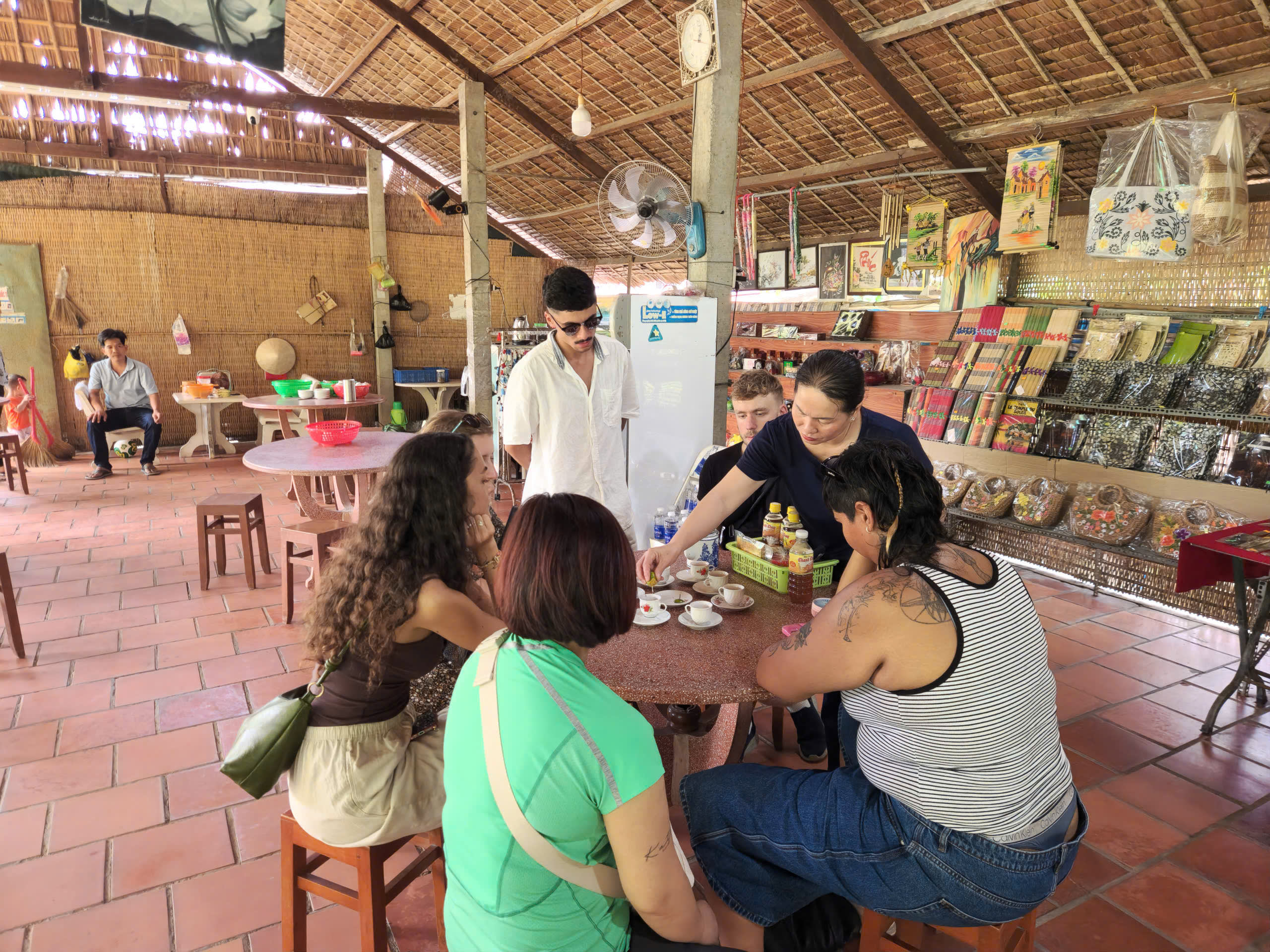 녹음이 우거지고 친절한 현지인들로 유명한 조용한 시골 지역인 탄퐁 섬으로 계속 이동합니다. 마을 길을 걷거나 자전거를 타고 과일 정원을 탐험하며 섬에서의 일상생활을 경험해 보세요. 현지 가족이 준비한 가정식 점심 식사로 여행이 마무리됩니다.