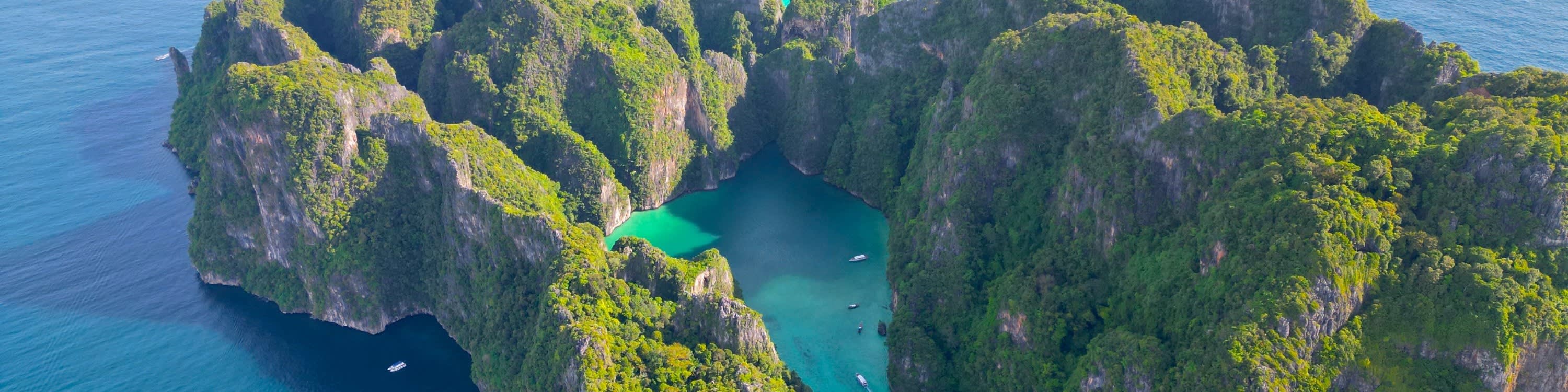 영화 'The Beach'로 유명한 태국에서, 아니 전 세계에서 가장 아름다운 해변인 마야 베이를 방문해보세요. 청록색 바닷물에서 시원하게 수영을 즐길 수 있는 완벽한 장소인 Pileh Lagoon을 방문하세요.