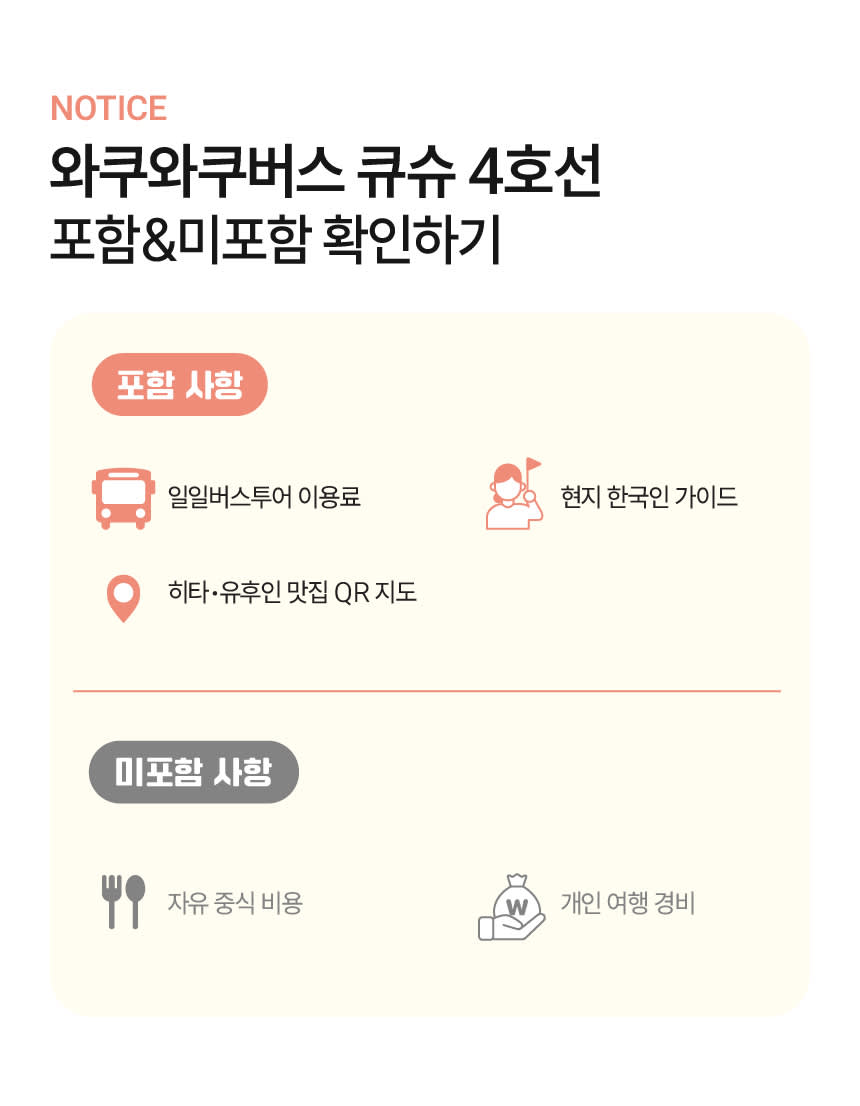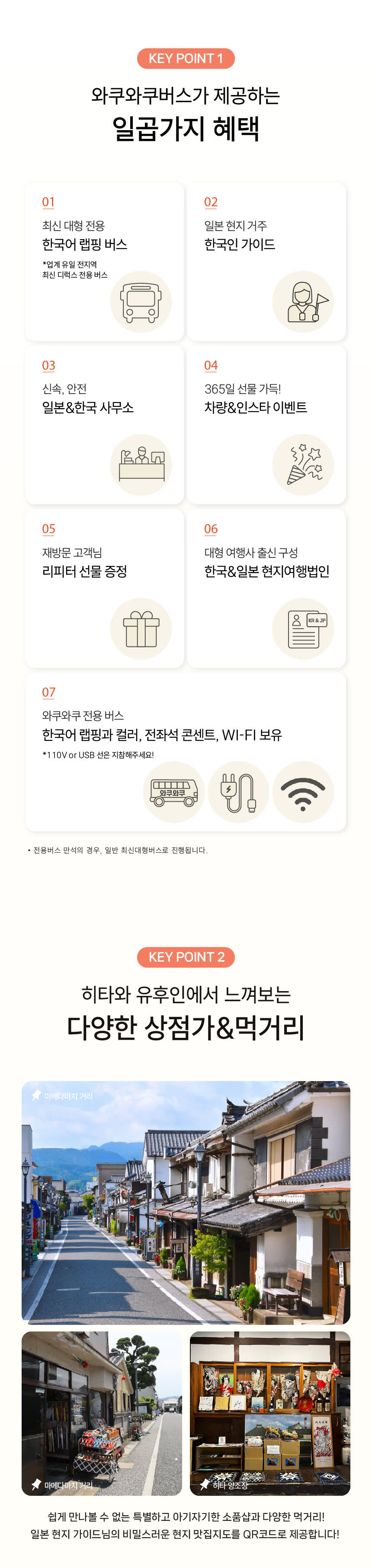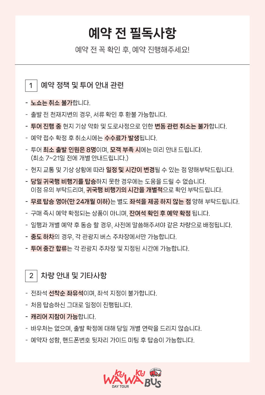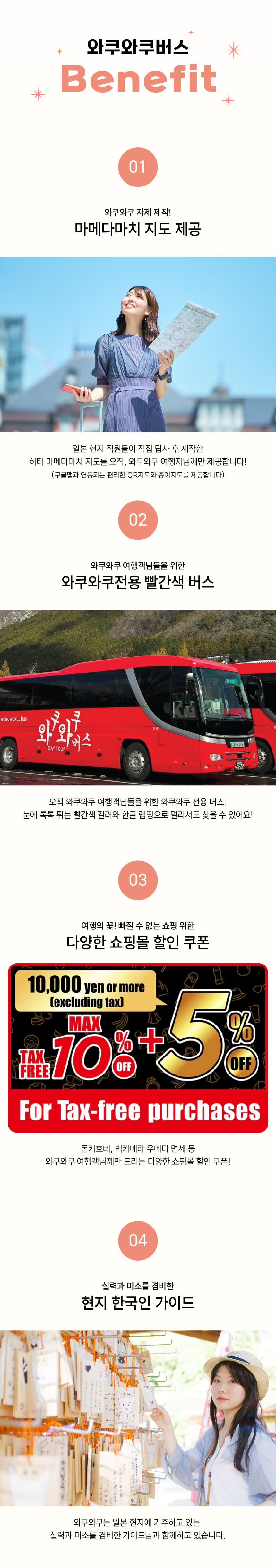 와쿠와쿠의 빨간색 최신식 대형 전용버스를 타고 친절한 한국인 가이드와 함께하는 당일 투어!
