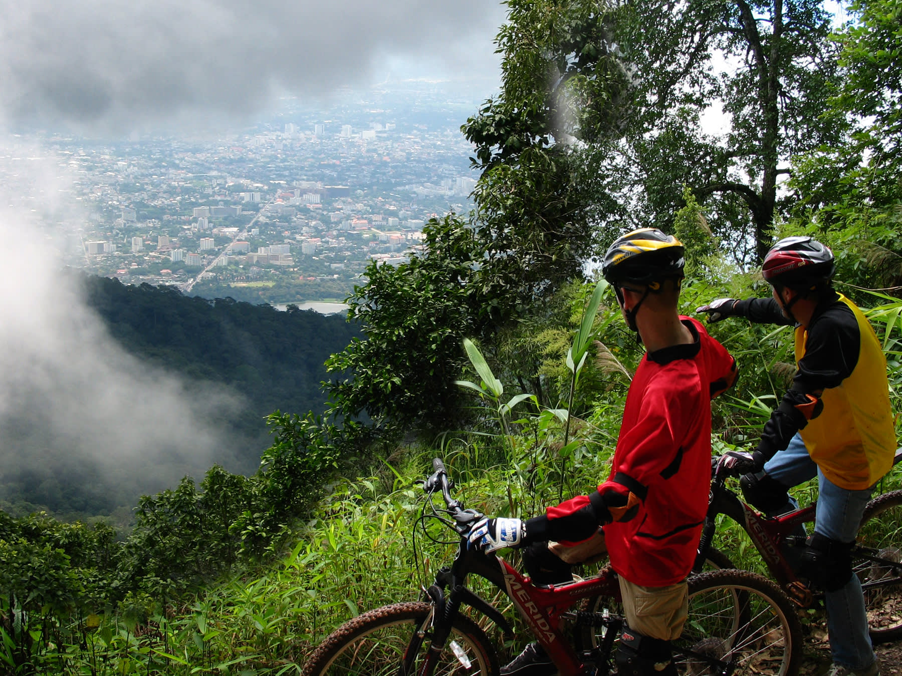치앙마이 도이수텝 국립공원에서 즐기는 다운힐 산악자전거는 호텔 픽업, 자전거 피팅, 안전 브리핑으로 시작하는 인기 있고 그림 같은 어드벤처입니다. 모든 준비를 마친 후 45분간 셔틀을 타고 도이뿌이 정상으로 이동하여 25km의 오프로드 다운힐 라이딩을 준비합니다. 시원한 공기를 마시며 숨을 고르세요. 산에서 계곡으로 내려가는 동안 산악 부족 마을, 산악 농장, 고지대 정글을 지나게 됩니다. 전문 산악자전거 가이드가 필요에 따라 도움을 드리고, 편안하게 라이딩을 즐기며 경치를 감상할 수 있도록 도와드립니다. 이 라이딩은 의욕적인 초보자부터 고급 라이더까지 모두에게 적합합니다. 산을 내려가는 지프 트랙은 다소 험난하지만, 많은 분들이 이곳에서 처음으로 본격적인 산악자전거를 경험하게 될 것입니다. 아름다운 경치가 노력을 보상해 줄 것입니다. 라이딩은 후아이 틍 타오 호수로 이어지며, 호숫가에서 늦은 점심 식사와 수영을 즐긴 후 트럭을 타고 편안하게 호텔로 돌아갑니다.