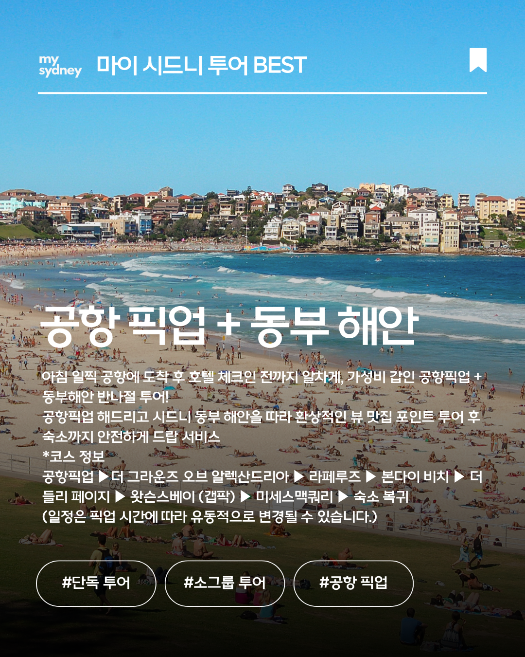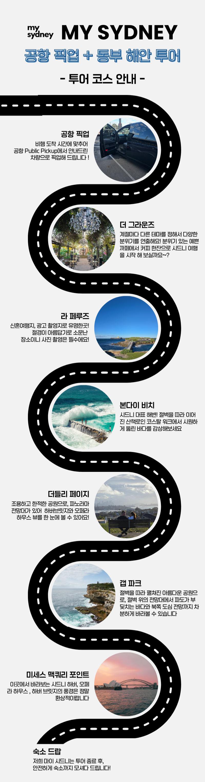 저희 마이시드니가 여러분들을 위한 편리하고 알찬 여행 코스를 준비하였습니다.