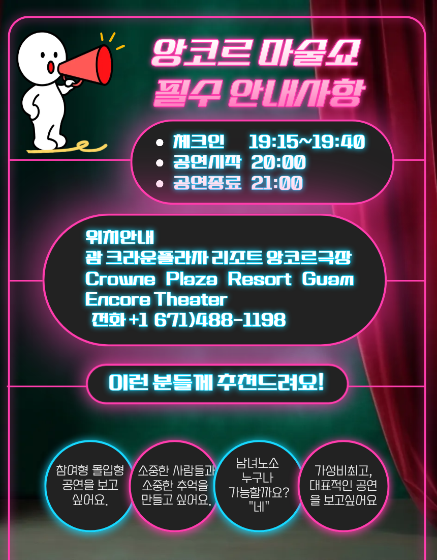 괌 엔터테이먼트 끝판왕 피쉬아이 원주민쇼+앙코르마술쇼 다양한 수상경력을 자랑하는 인증된공연