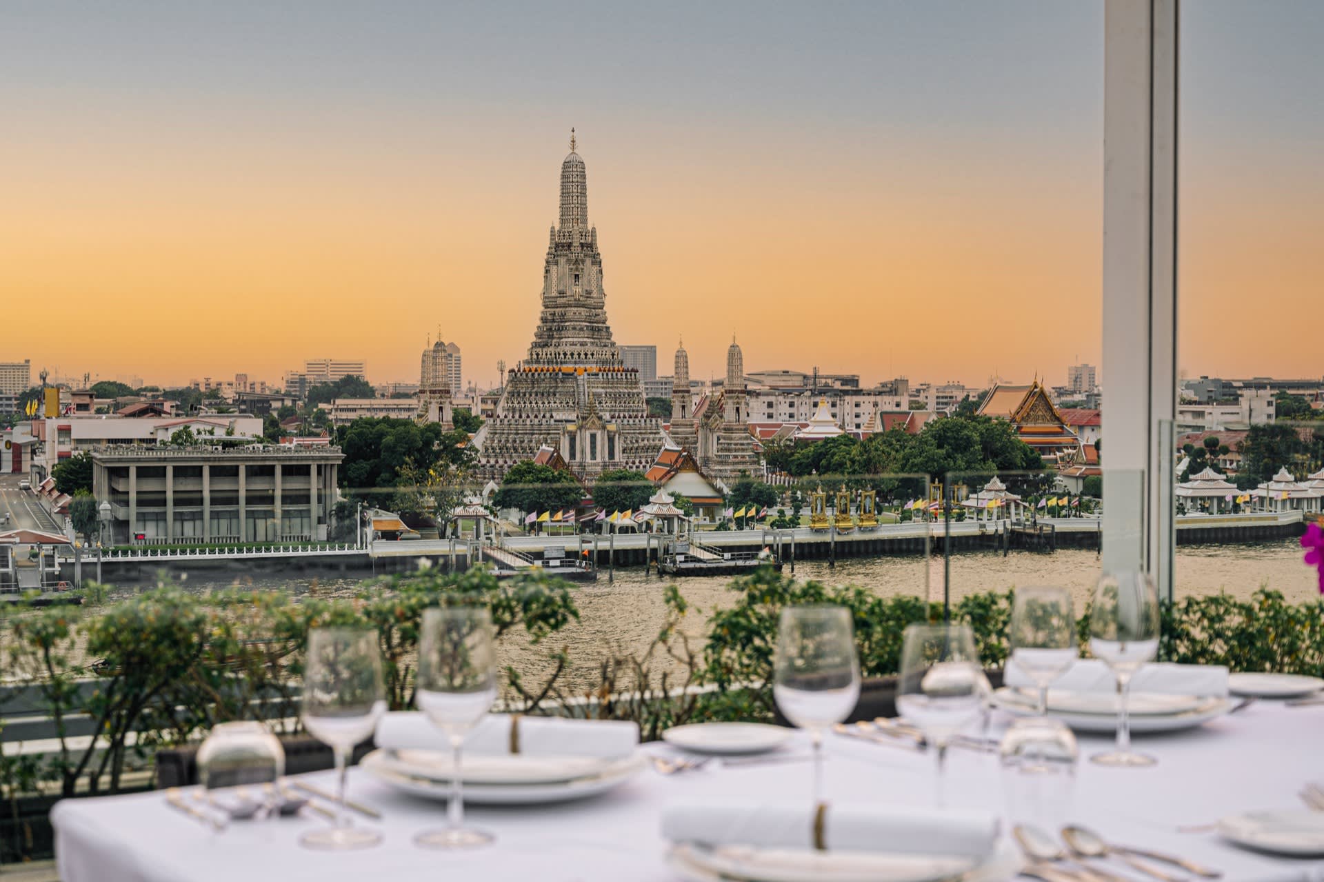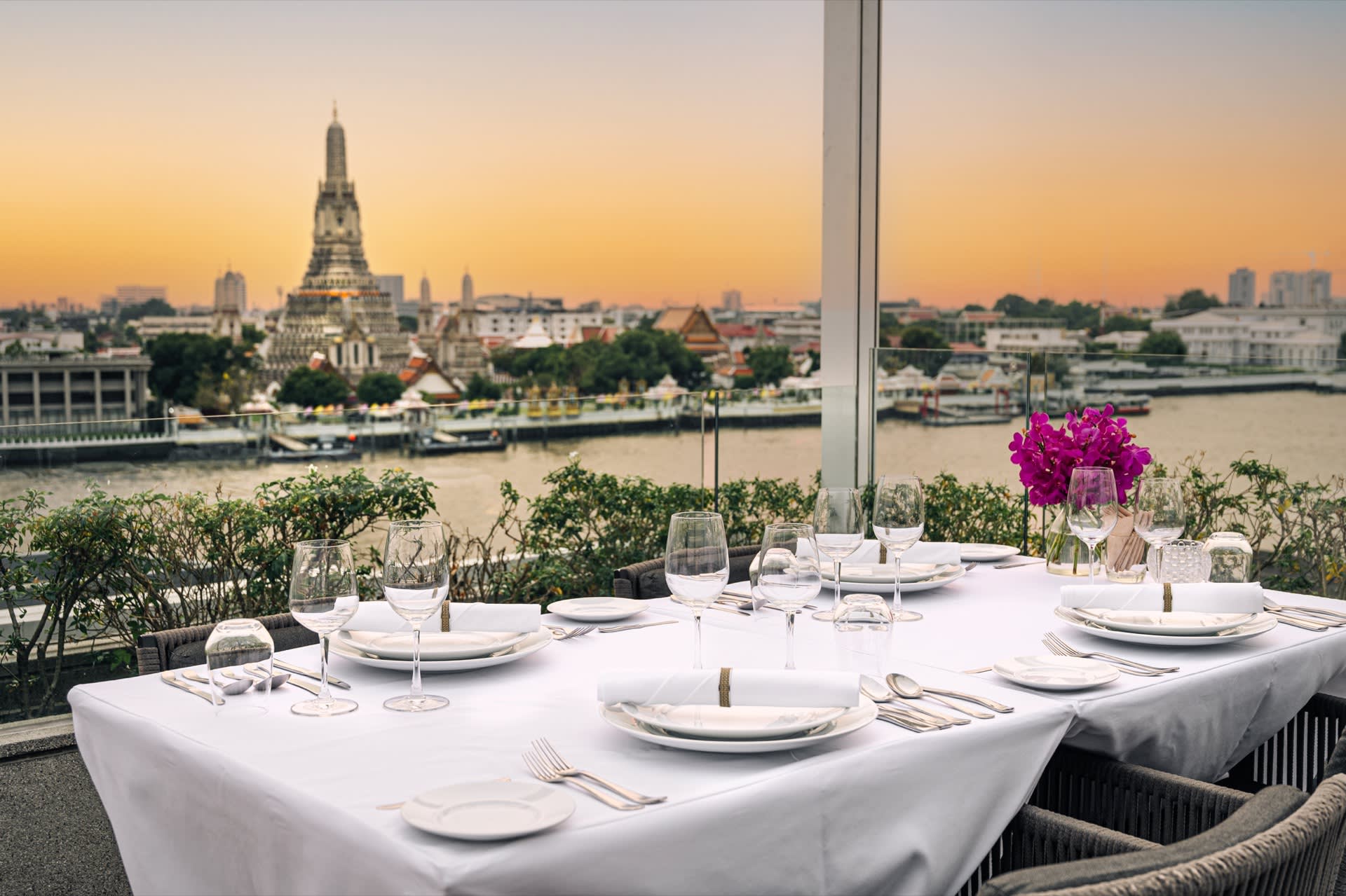 왓아룬과 차오프라야강이 내려다보이는 로맨틱한 루프탑 다이닝