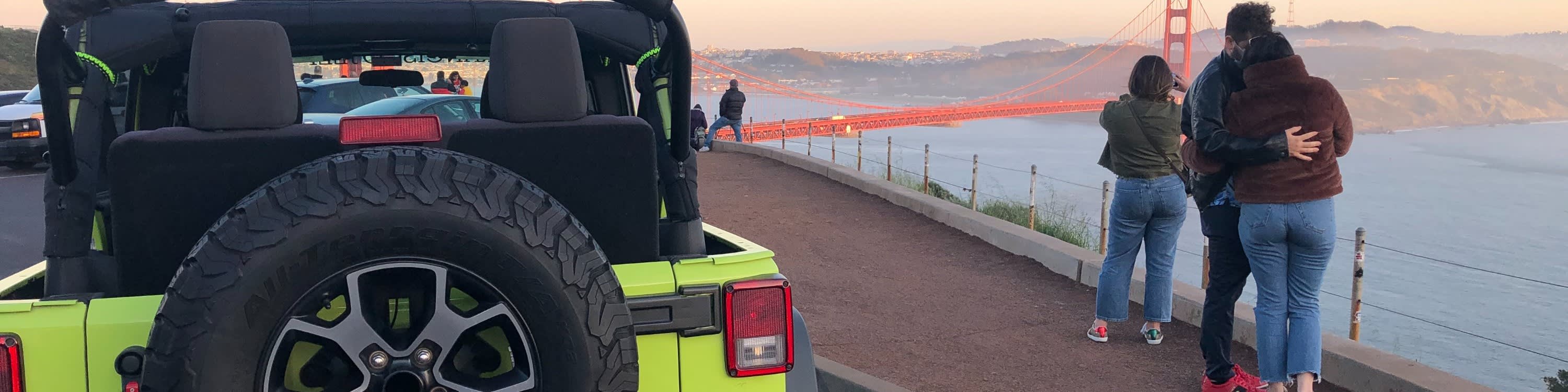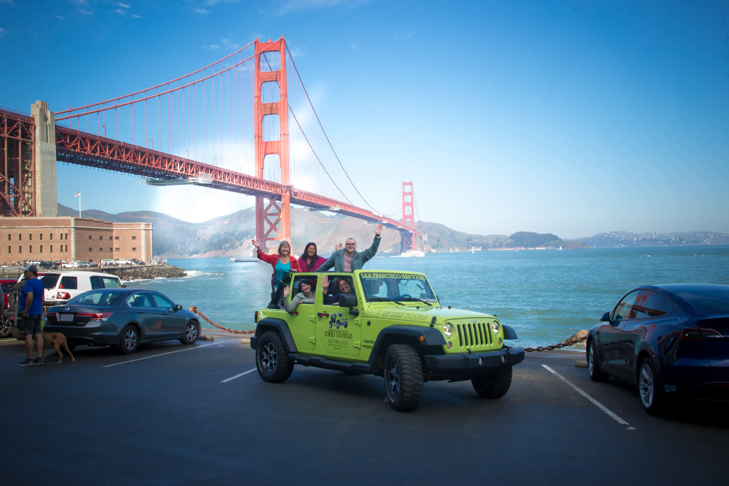 프라이빗 지프 투어를 타고 샌프란시스코의 아름다운 야경을 만끽하세요. 가족 또는 소규모 그룹에게 안성맞춤인 투어가 특별한 추억을 선사합니다. 전문 가이드가 상징적인 지프차를 직접 운전하며, 그룹의 선호도에 맞춰 투어 속도를 조절해 드립니다. 2시간 동안 진행되는 오픈형 컨버터블 지프 투어를 통해 반짝이는 도시의 야경을 감상하고, 원하는 일정에 맞춰 샌프란시스코를 탐험해보세요. 금문교 방문은 필수 코스입니다! 오픈 에어 지프는 최대 6명까지 탑승 가능하며, 3열 좌석에는 성인 4명과 어린이/청소년 2명까지 편안하게 앉을 수 있습니다.