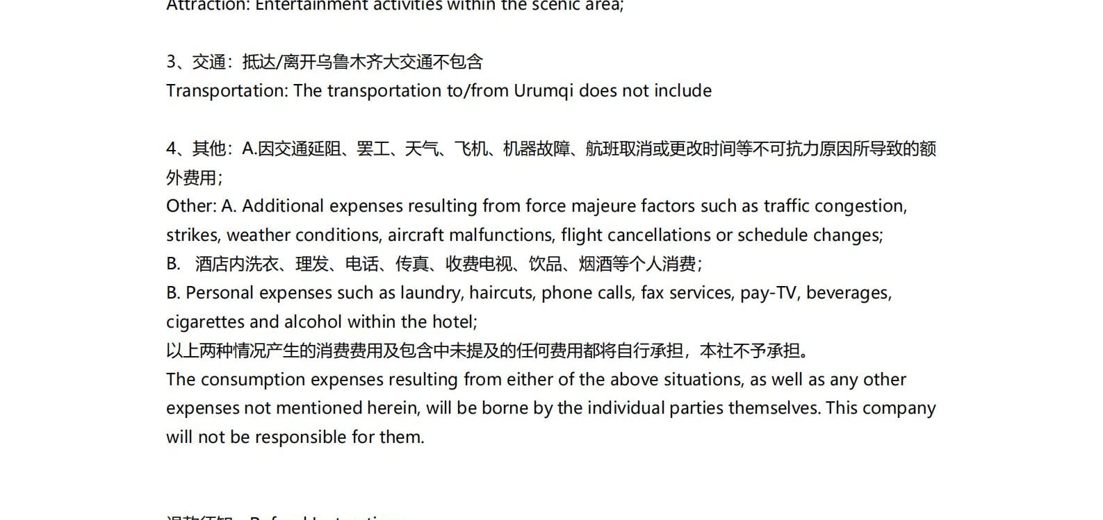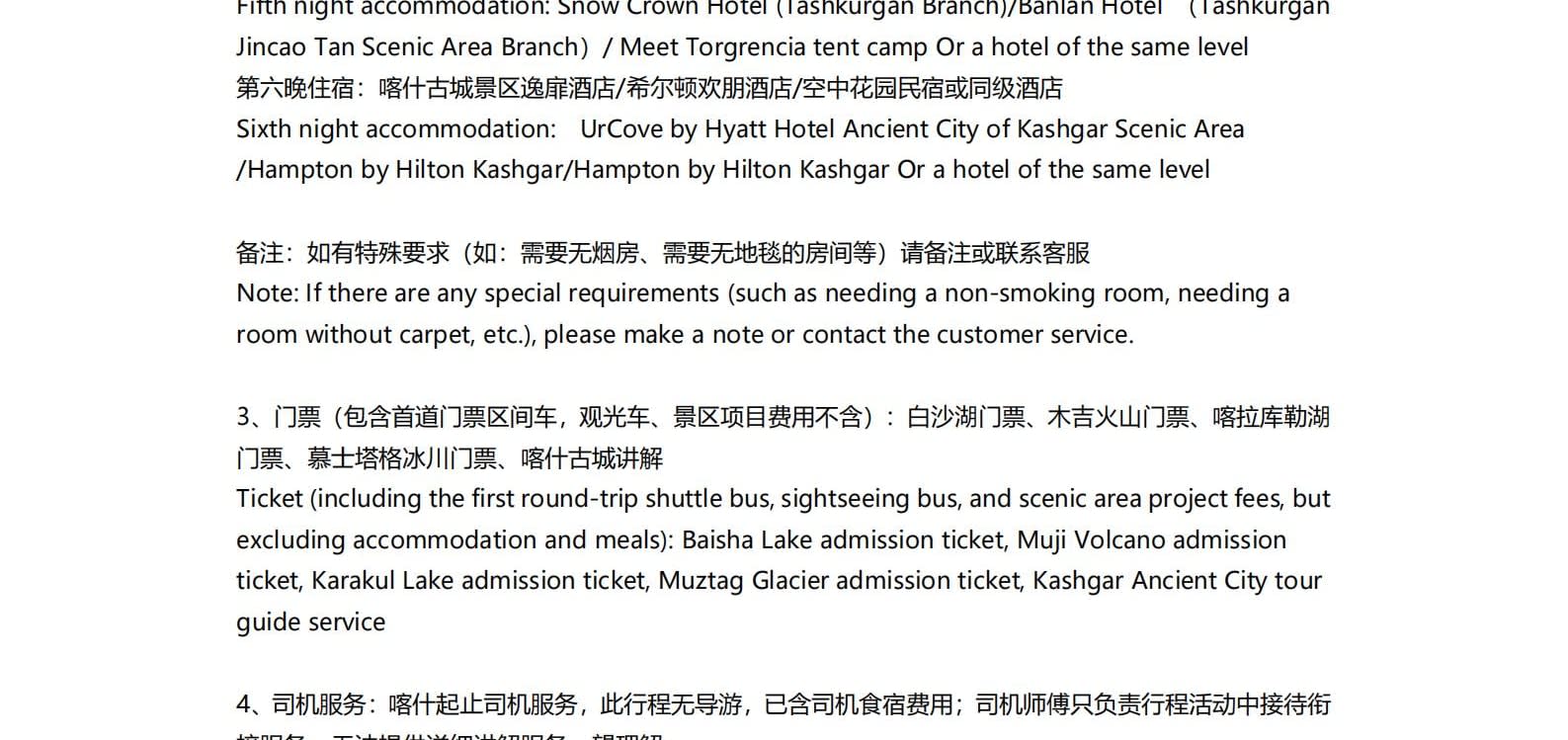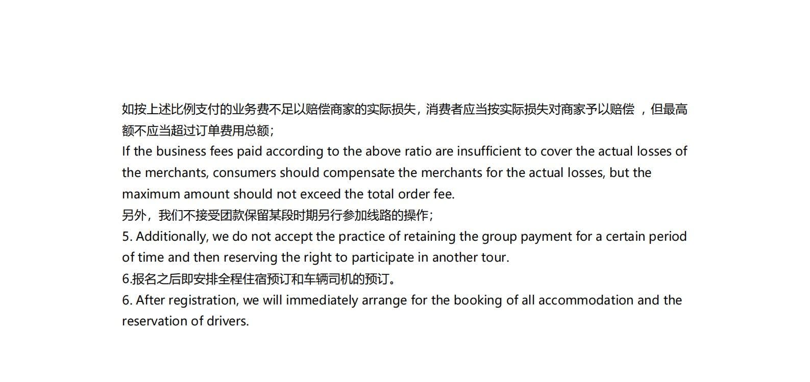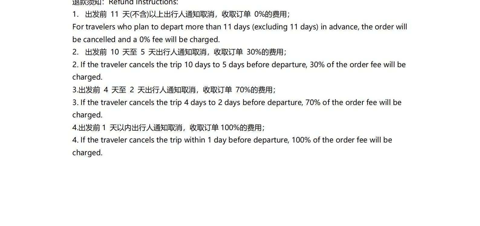 -주문 후, 직원이 고객에게 연락하여 신분증 정보를 요청할 것입니다. 환불 규정: 1. 출발 11일 전(11일 제외)보다 일찍 출발할 예정인 여행객의 경우, 주문이 취소되며 수수료는 0% 부과됩니다. 2. 여행객이 출발 10일 전부터 5일 전 사이에 여행을 취소하는 경우, 주문 금액의 30%가 부과됩니다. 3. 여행객이 출발 4일 전부터 2일 전 사이에 여행을 취소하는 경우, 주문 금액의 70%가 부과됩니다. 4. 여행객이 출발 1일 전 이내에 여행을 취소하는 경우, 주문 금액의 100%가 부과됩니다. 상기 비율에 따라 지불된 사업 수수료가 판매자의 실제 손실을 충당하기에 부족한 경우, 소비자는 판매자의 실제 손실을 보상해야 하지만, 최대 금액은 총 주문 금액을 초과할 수 없습니다. 5. 또한, 단체 결제 금액을 일정 기간 동안 보관한 후 다른 투어에 참여할 권리를 유보하는 관행은 허용되지 않습니다. 6. 등록 후, 모든 숙소 예약 및 운전자 예약을 즉시 진행할 예정입니다.